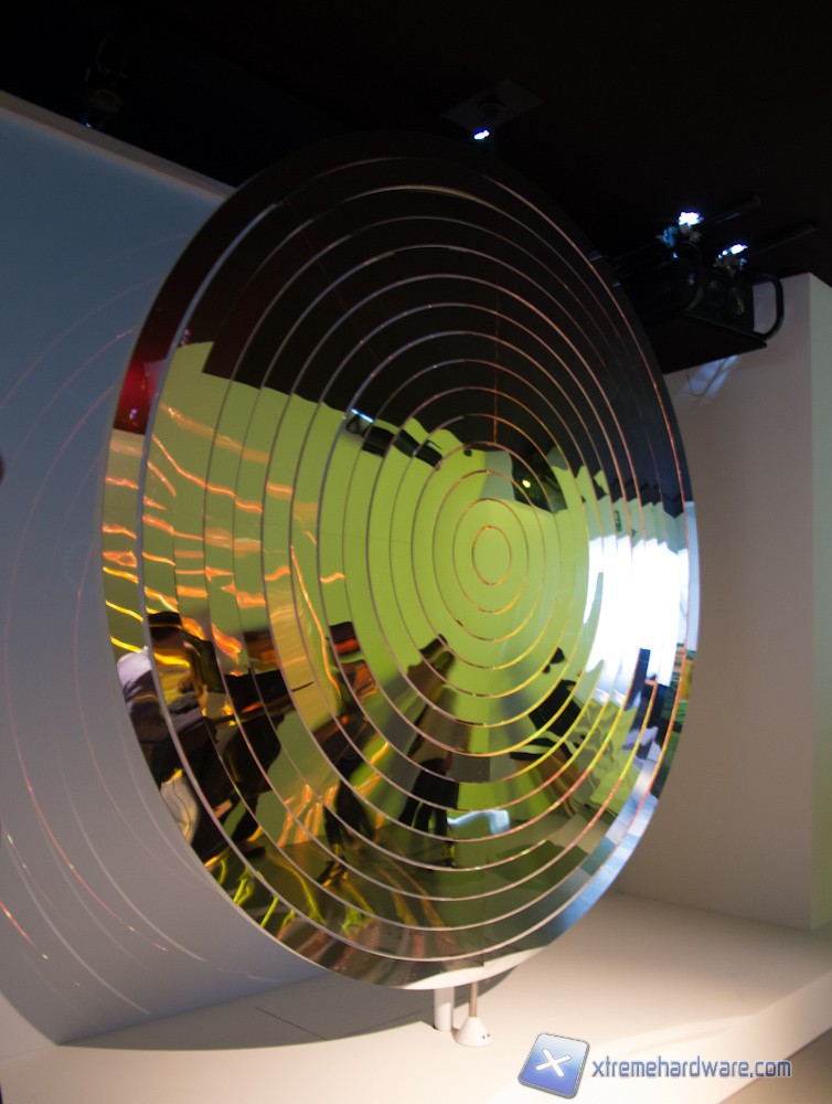 L’installazione che desta più stupore è sicuramente quella all’ingresso, in cui tre grandi dischi composti da cerchi concentrici mostrano e allo stesso tempo riflettono immagini e luci provenienti da tre proiettori. Il fascino dei giochi di luci è ulteriormente accentuato dal fatto che i cerchi sono animati di vita propria, grazie a un complesso meccanismo che li fa ruotare con diverse angolazioni. L’effetto è ammaliante e difficile da descrivere, sebbene non sia possibile interagire direttamente, si resta un buon quarto d’ora a guardarli.