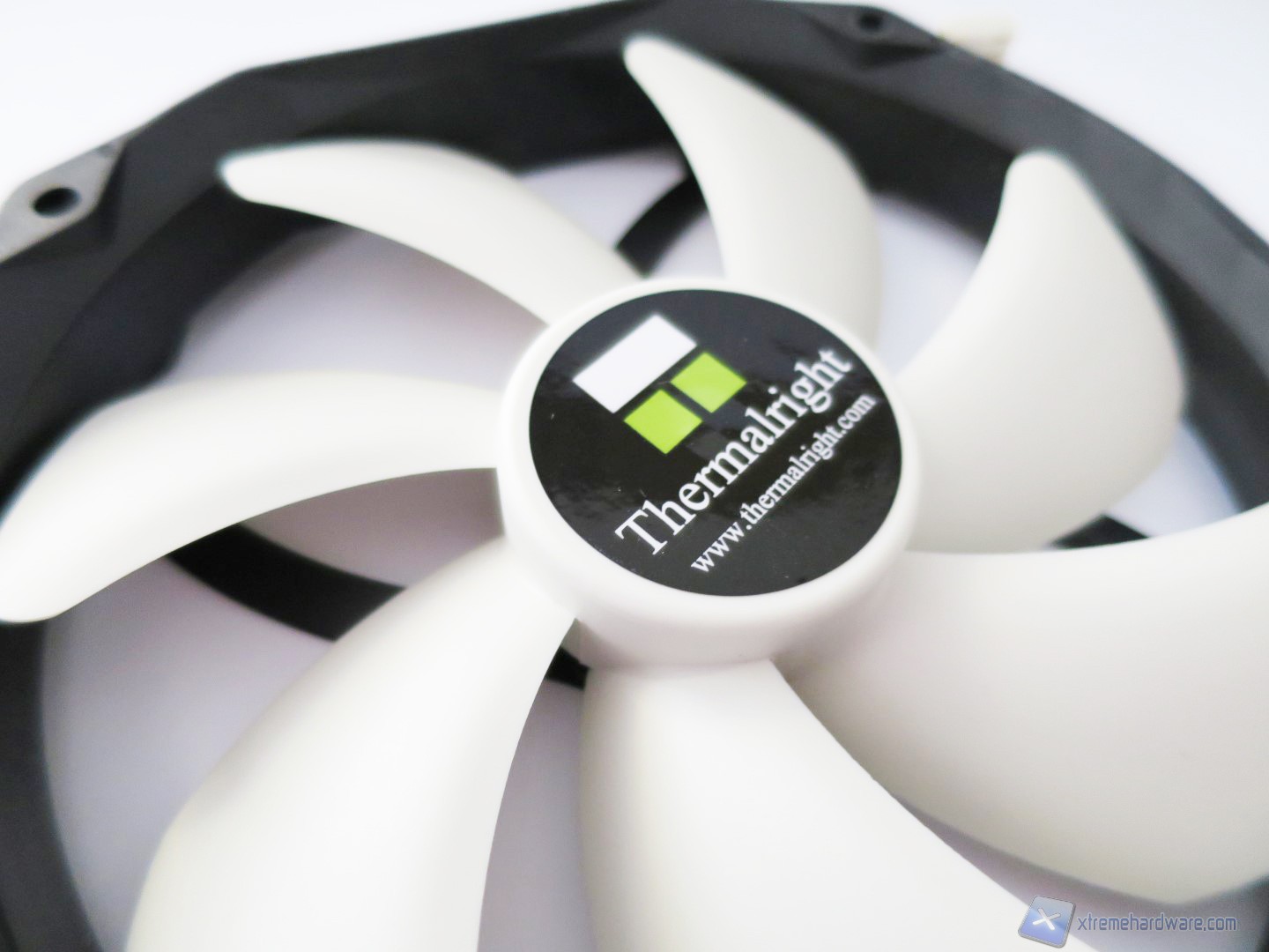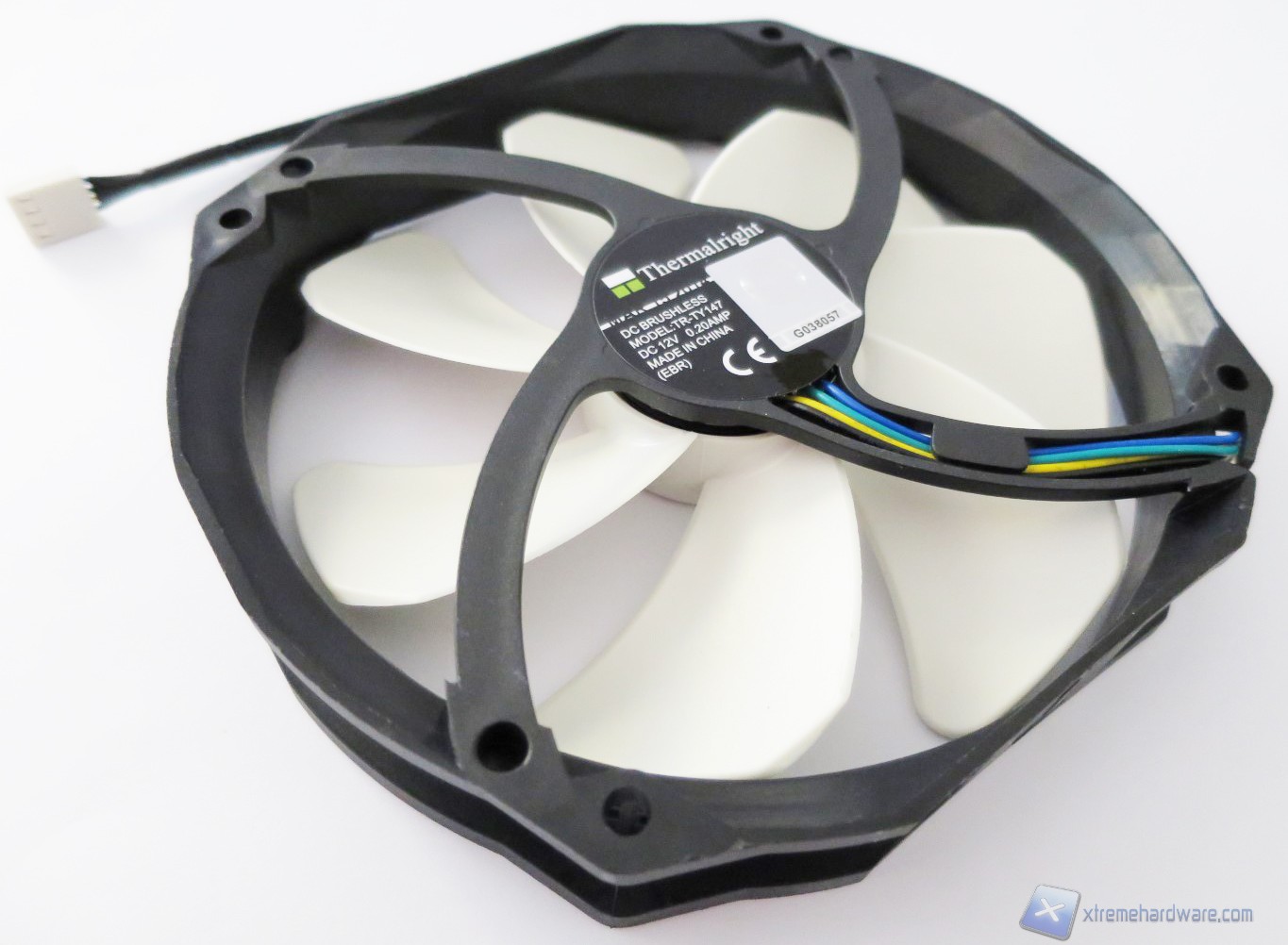 Detto questo passiamo all’analisi del modello Thermalight TR-TY147. La ventola ha dimensioni di 140 millimetri con uno spessore classico di 25 millimetri. La colorazione è nera per il frame e bianca per le 7 pale Silent Torpedo che la compongono. Le pale così come il frame non hanno la classica forma netta ma hanno un design aerodinamico il quale riduce la frizione consentendo un flusso uniforme e stabile. La ventola è dotata della tecnologia EHFB (Enhanced Hyper-Flow Bearing) che assicura RPM stabili e una vita prolungata della ventola stessa. La TR-TY147 ha un peso di 160 grammi ed assicura, essendo PWM, una rotazione compresa tra i 900 ed i 1300rpm garantendo dunque prestazioni più che valida ad una rumorosità contenuta. Infatti i valori dichiarati sono 17 – 21 dBA. La pressione statica della ventola è dichiarata inoltre per 28.3 - 73.6 CFM, un valore molto buono viste le dimensioni della ventola. La ventola come sempre è dotata di un cavo rivestito in treccia di tessuto (colorazione nera) ed un connettore a 4 Pin PWM in grado di adeguare la velocità alla temperatura della CPU.