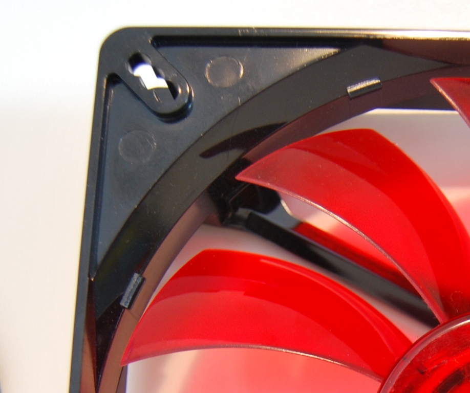 L’alloggiamento del motore è invece piuttosto ingombrante e misura 4,5 cm di diametro. Ciò crea un consistente vuoto d’aria sul radiatore su cui sarà installata la ventola, diminuendo così l’efficienza della superficie sottostante. Tale inconveniente può essere mitigato tramite l’utilizzo di un convogliatore d’aria che distanzia la ventola dal radiatore, in modo da uniformarne il flusso una volta giunto sulla superficie da dissipare.
