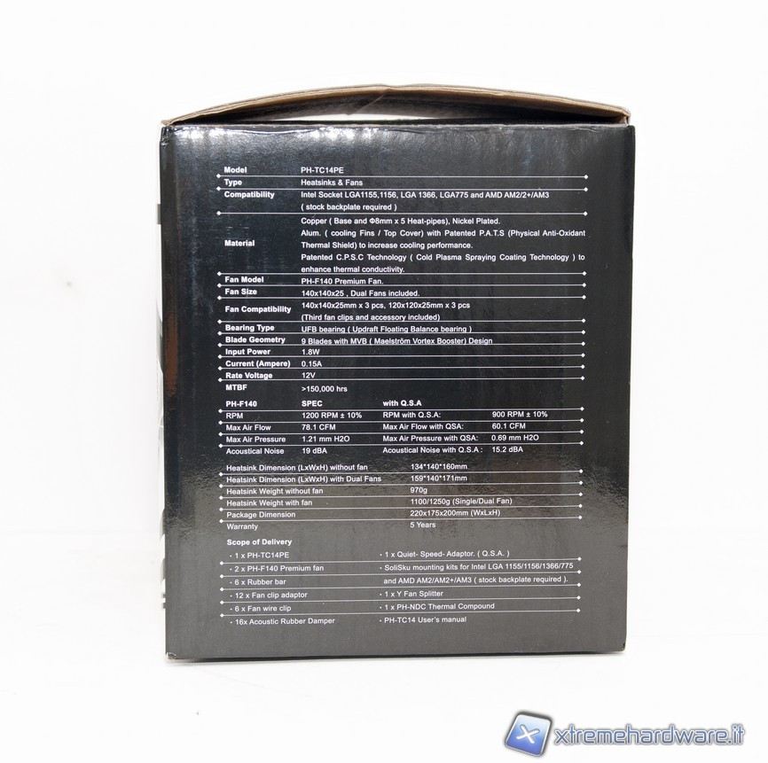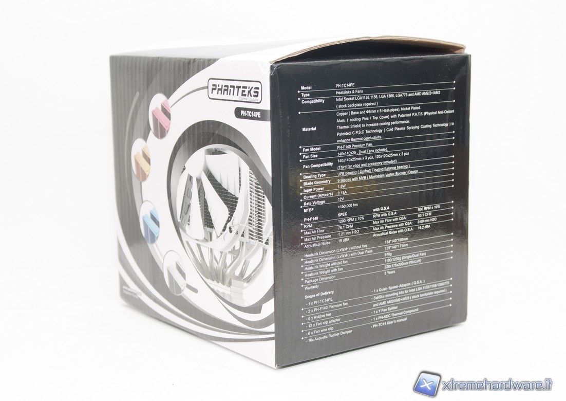 Il dissipatore è contenuto in una confezione quadra in cui dominano principalmente i colori bianco e nero. Troviamo sulla prima facciata una piccola immagine del prodotto e a sinistra le quattro colorazioni in cui è disponibile il prodotto. Nella parte destra troviamo, in modo dettagliato, le caratteristiche tecniche del prodotto scritte in lingua inglese.