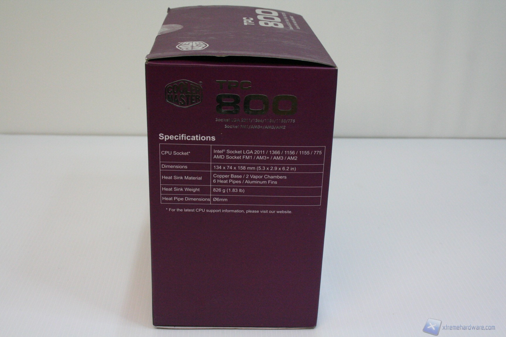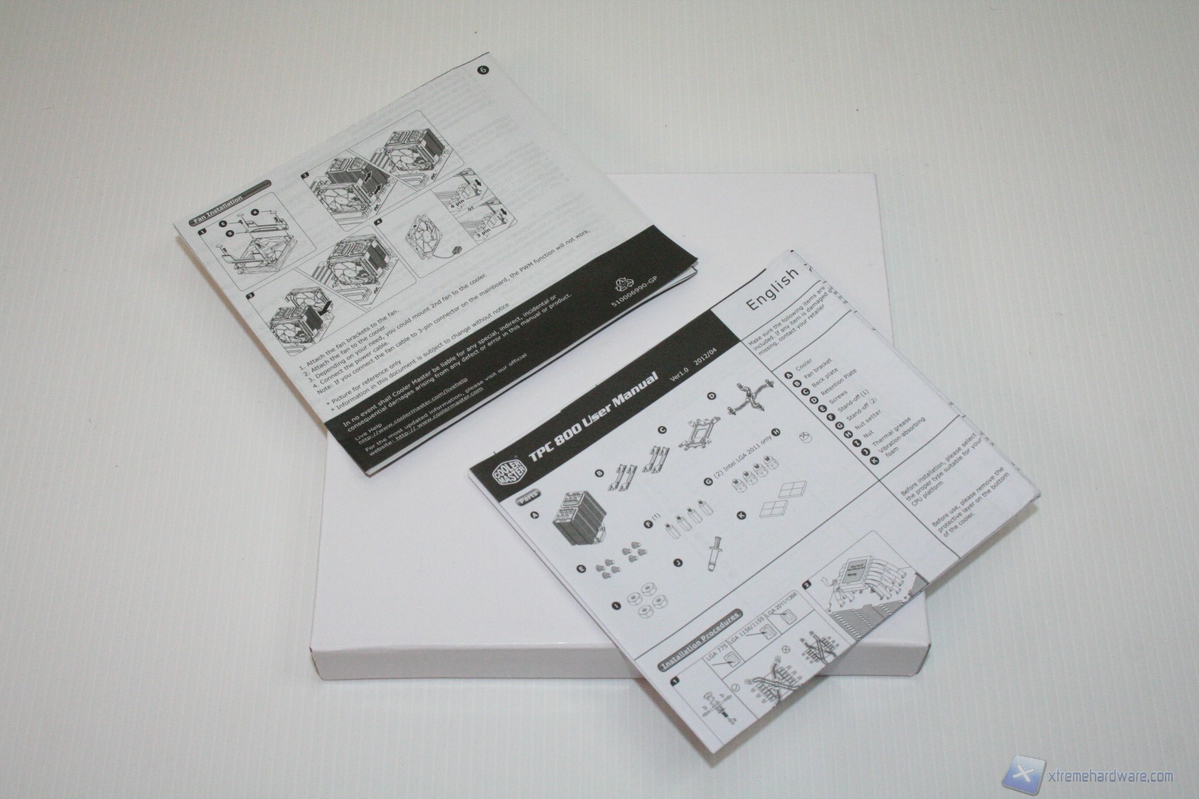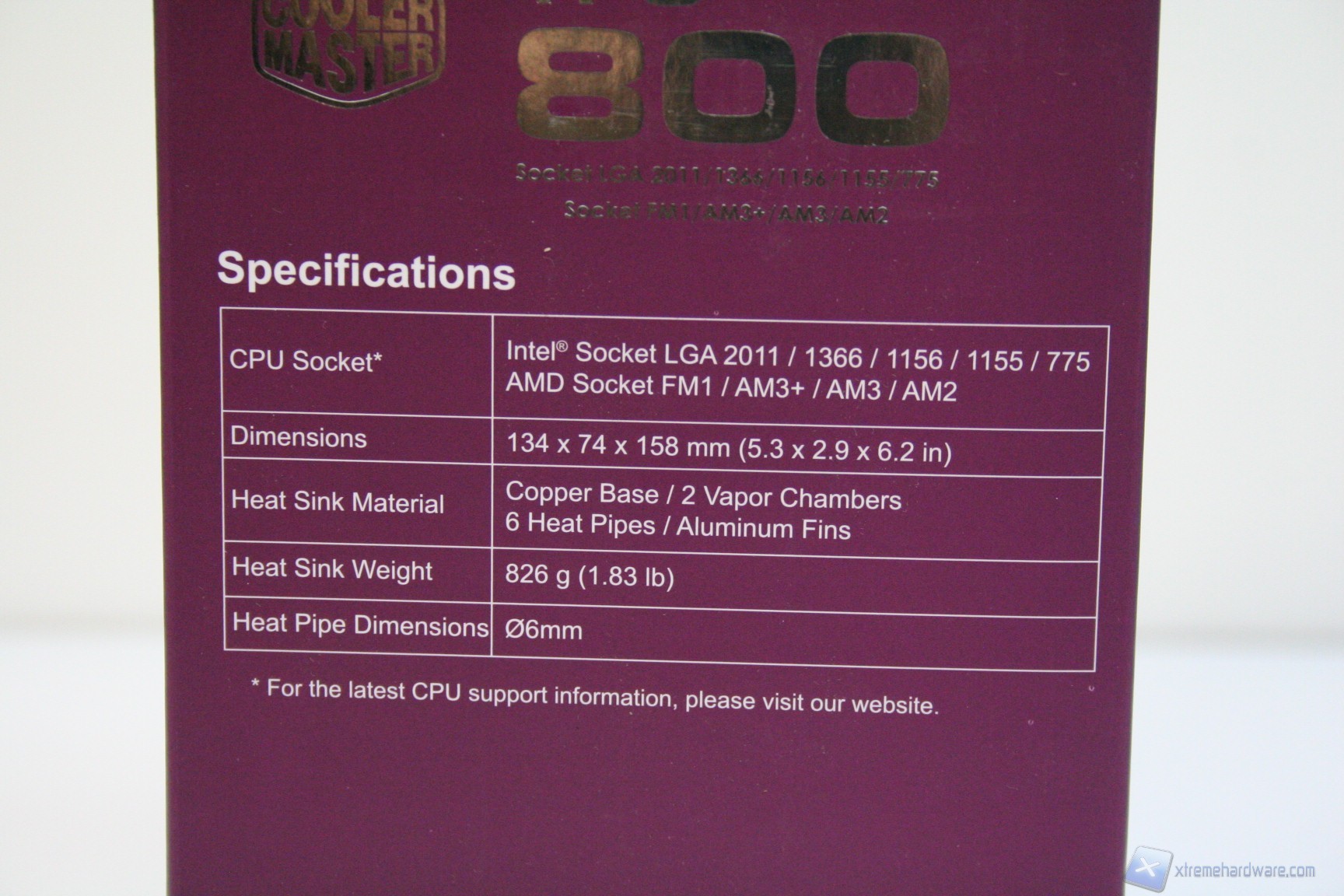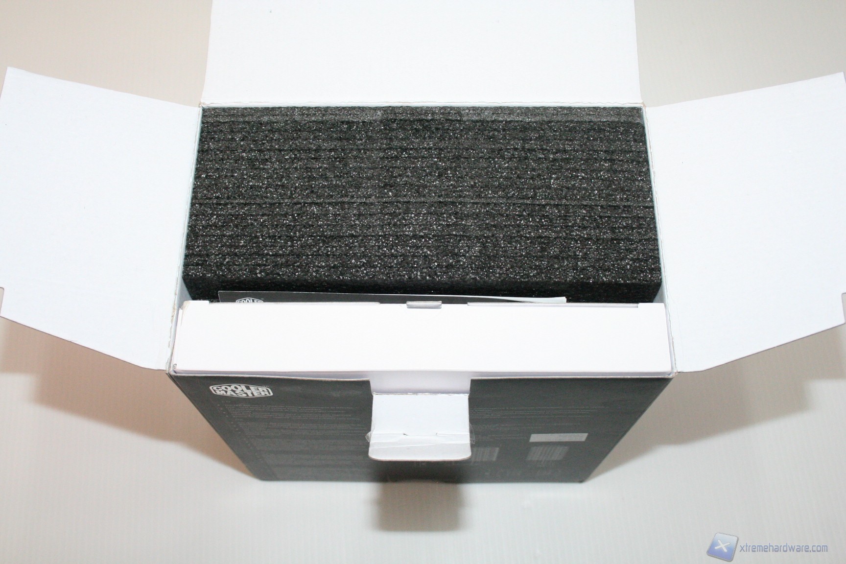 La confezione è classica Cooler Master, quindi di buon livello ma dalle informazioni essenziali. L’imballo interno però è eccellente, e il dissipatore è riposto all’interno di uno strato di poliuretano protettivo, che ne impedisce il danneggiamento per urti accidentali derivanti dal trasporto. Generalmente è già da questo elemento che si capisce quanto il marchio abbia lavorato bene, è un indice di qualità e rispetto verso il prodotto. Vi mostriamo alcune fotografie dell’imballo e del contenuto: