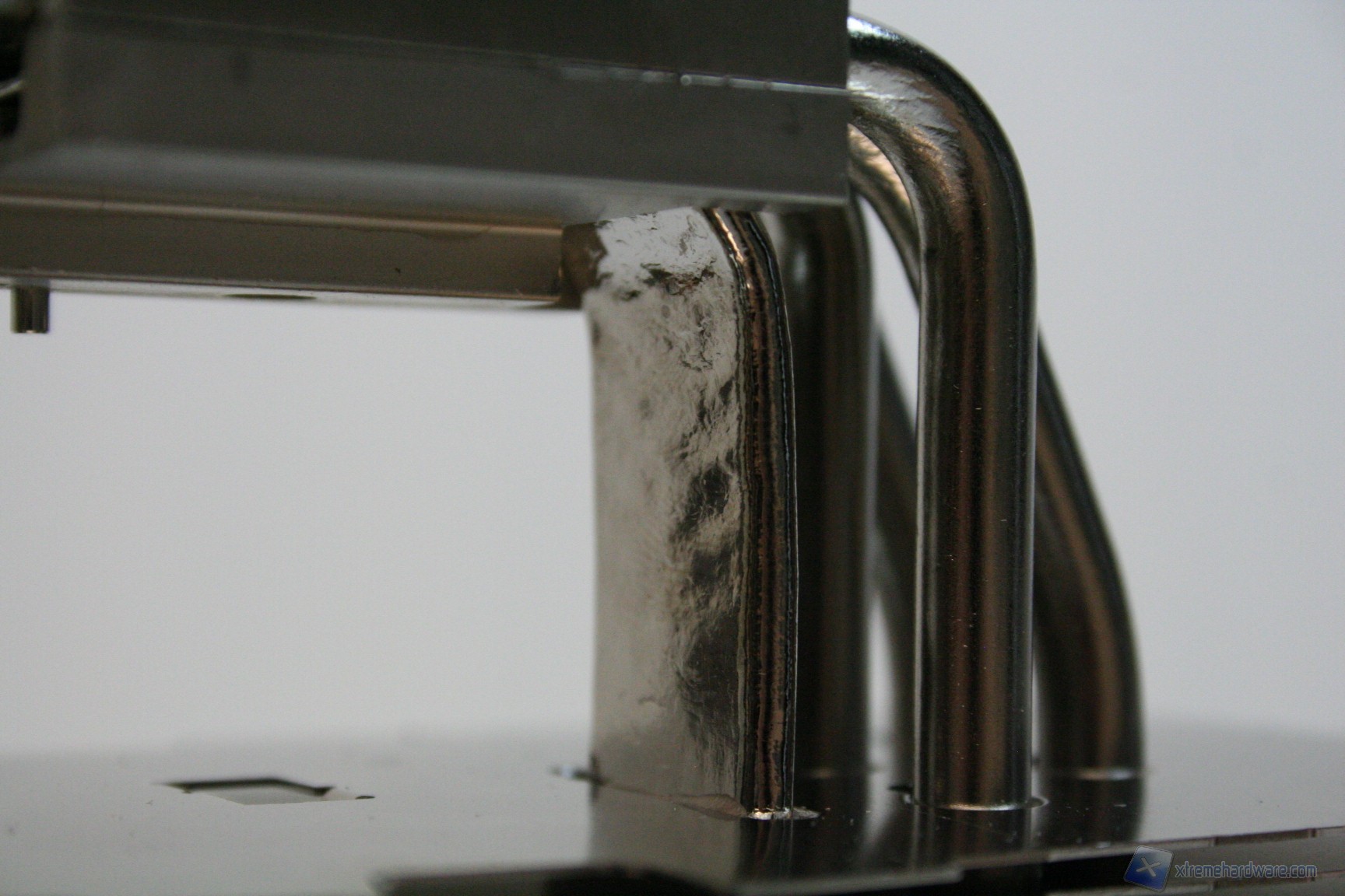 Le saldature, come pubblicizzato da Cooler Master, sono molto buone, anche se però per le ultime due heatpipes vediamo che è presente qualche piccola fessura. Probabilmente all’interno non ci sarà nessun problema, stando ai risultati conseguiti.