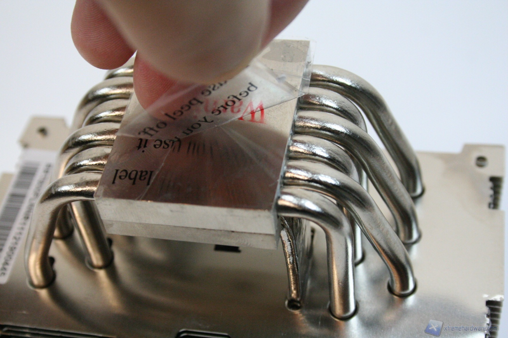 Il dissipatore presenta un’altezza del corpo dissipante principale leggermente elevata, 163cm, quindi fate attenzione all’atto dell’acquisto e controllate la compatibilità con il vostro cabinet perché potrete avere brutte sorprese. La base di contatto presenta un’ottima finitura nickelata, una forma rettangolare oltre all’assenza della curvatura centrale convessa, che generalmente veniva adottata per migliorare l’impronta di contatto della CPU nei socket 775/1155/1156/1366. Facciamo presente che sebbene il sample che abbiamo ricevuto fosse nuovo, era presente della pasta termica sotto la protezione di plastica. Qualora lo troviate anche voi è possibile che questo modello fosse stato testato per il controllo qualità. Abbiamo utilizzato delle soluzioni di pulizia Arctic Cooling, quindi vi consigliamo di dare una pulita prima dell’applicazione della vostra pasta termica.