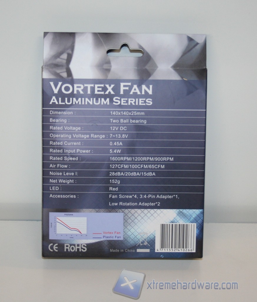 Abbiamo già recensito la nuova serie Prolimatech, che consiste in tre ventole da 120mm e ben 4 da 140mm, entrambe sempre con 25mm di spessore; la linea produttiva “Vortex” è interessante in quanto è finalizzata ad un pubblico molto esigente in termini prestazionali, non a caso il valore di targa della serie da 120mm è ben 72.67CFM, al massimo del regime di rotazione. Per quanto riguarda le 140mm invece il valore sale ad 87CFM.