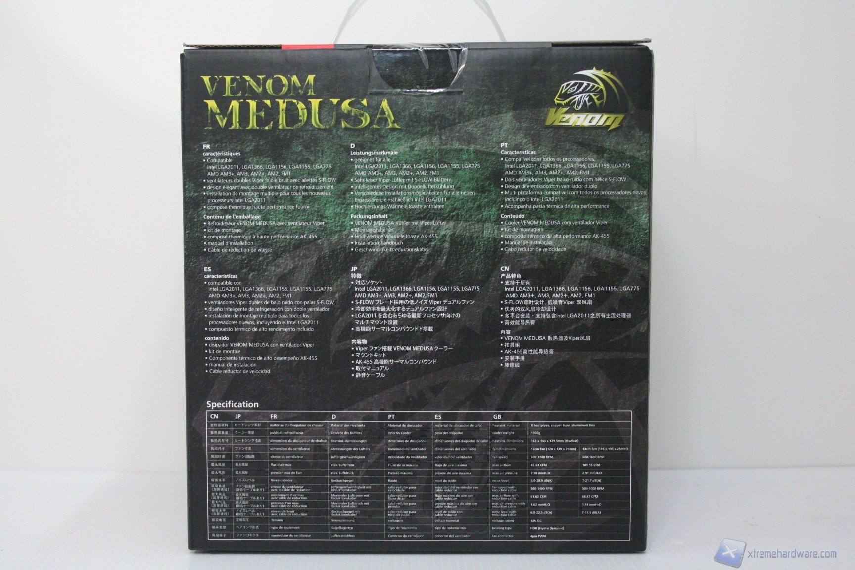 La confezione è davvero molto curata e presenta anche una comoda maniglia superiore per il trasporto. Il bundle è ottimo in quanto sono presenti due ventole Viper S-Flow, un tubetto di pasta termoconduttiva proprietaria e connettori dedicati per configurazioni multi ventola. L’imballo è altrettanto valido.