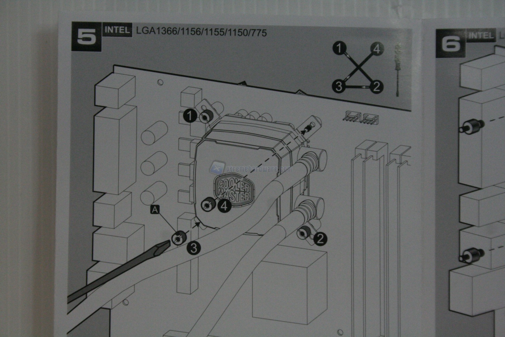 Il dissipatore è inserito all’interno di una classica, e notevole, confezione Cooler Master. Il quantitativo di informazioni è elevato e l’imballo decisamente valido, data anche la confezione di generose dimensioni. Il confezionamento interno è derivante da sostanze riciclate, similmente a soluzioni della concorrenza e similmente ai prodotti immessi da CoolIt ed Asetek. Ciò rende possibile ovviare in parte ai seri problemi derivanti dagli imballi di prodotti informatici, che per la loro natura inquinante sono problematici nello smaltimento. Una volta aperta la confezione però è presente un sottile strato di polietilene espanso (PET). La scatola, di forma rettangolare, è molto rigida, ed all’esterno vengono riportate le tolleranze laterali e i dettagli dimensionali, aspetto interessante dato che non è prassi comune. Il manuale in dotazione, altro non è che un gigantesco foglio con i dettagli di installazione. Avremmo gradito un manuale classico ma per ragioni di costo probabilmente non si è scelto di optare per tale soluzione; comunque sia è curato e adatto allo scopo.