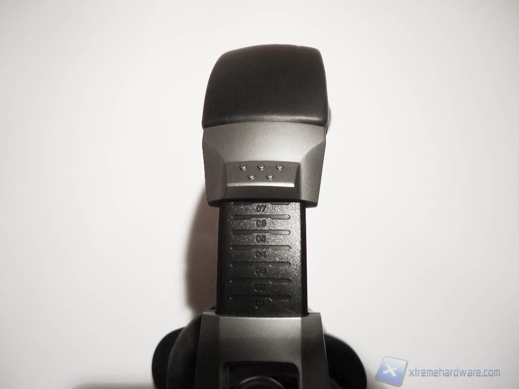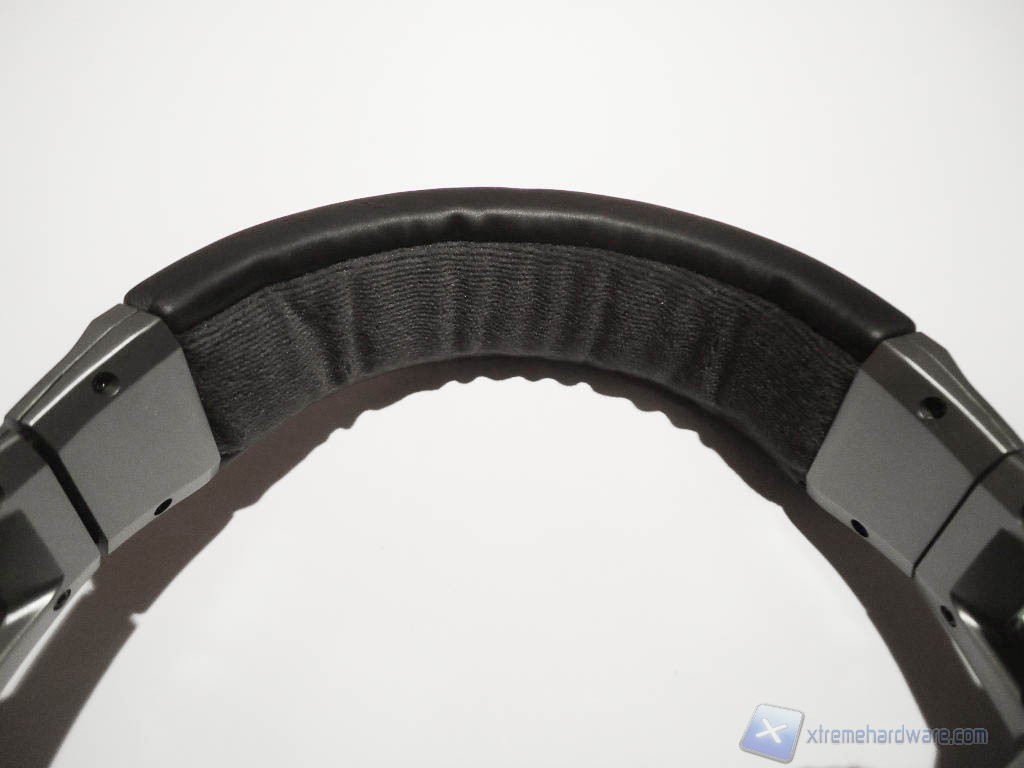 Le cuffie presentano padiglioni molto grandi e caratterizzati da una forma particolare, infatti non sono rotondi come la maggior parte degli headset ma presentano delle estensioni laterali dove sono contenute le casse aggiuntive per il surround. I padiglioni sono ben imbottiti e sono foderati con due materiali differenti , la parte a contatto con l’orecchio è rivestita con lo stesso tessuto che troviamo nell’archetto, mentre il restante è ricoperto in pelle.