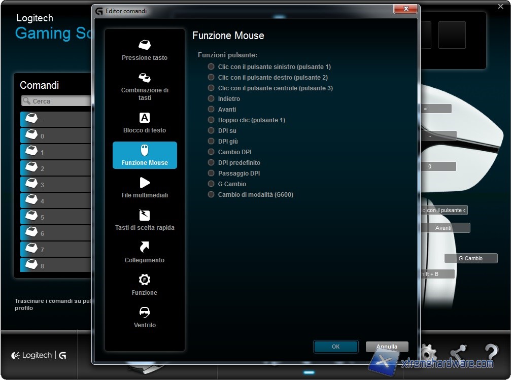 Installato dunque il software di gestione Logitech, non ci resterà che avviarlo e nel caso creare profili o assegnare nuove funzioni ai tasti presenti.