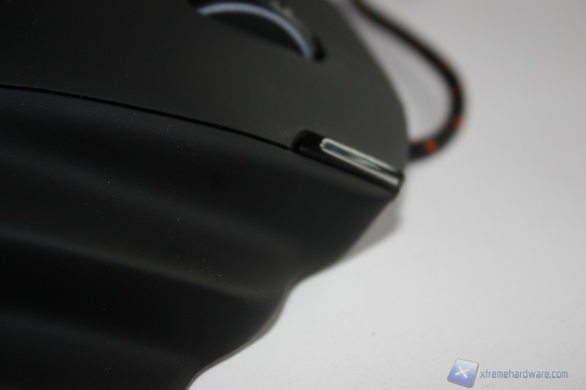 La parte sinistra del mouse presenta due pulsanti con funzione di navigazione “Avanti” ed “Indietro” o una qualsiasi funzione da assegnare tramite il pannello di gestione del mouse stesso. Il pulsante AIM che si illuminerà del colore che decideremo di impostare sempre e tramite il pannello di gestione del mouse, un ulteriore pulsante nella parte bassa anch’esso configurabile secondo le nostre esigenze e la scritta “Func” serigrafata sulla superfice soft touch del mouse.