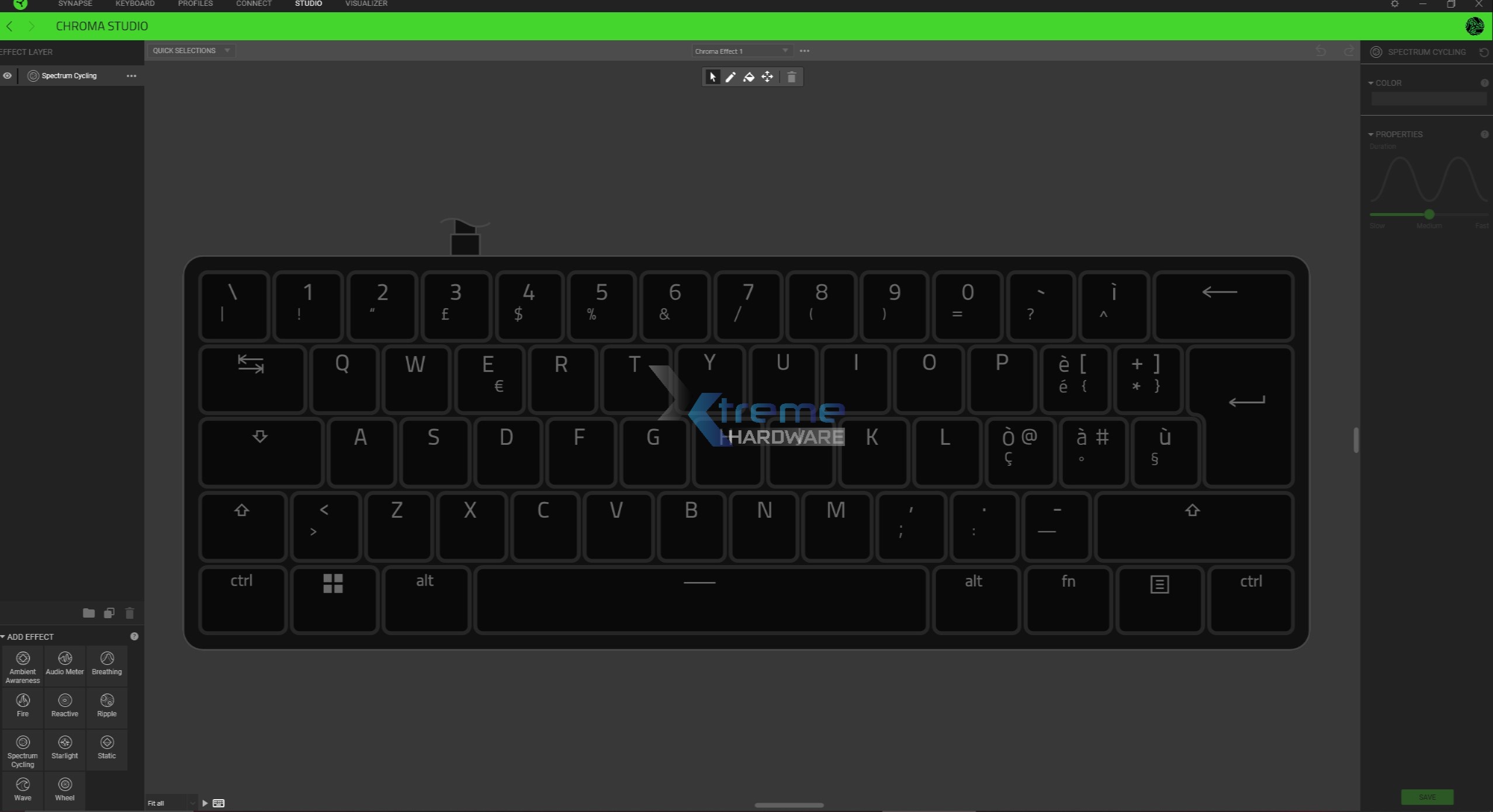Essendo la Razer Huntsman Mini dotata di illuminazione RGB Razer Chroma potremo, nel caso fossimo amanti delle lucine, sfruttare i presets predefiniti come il classico arcobaleno o creare veri e propri effetti di illuminazione ad hoc grazie al Razer Chroma Studio.