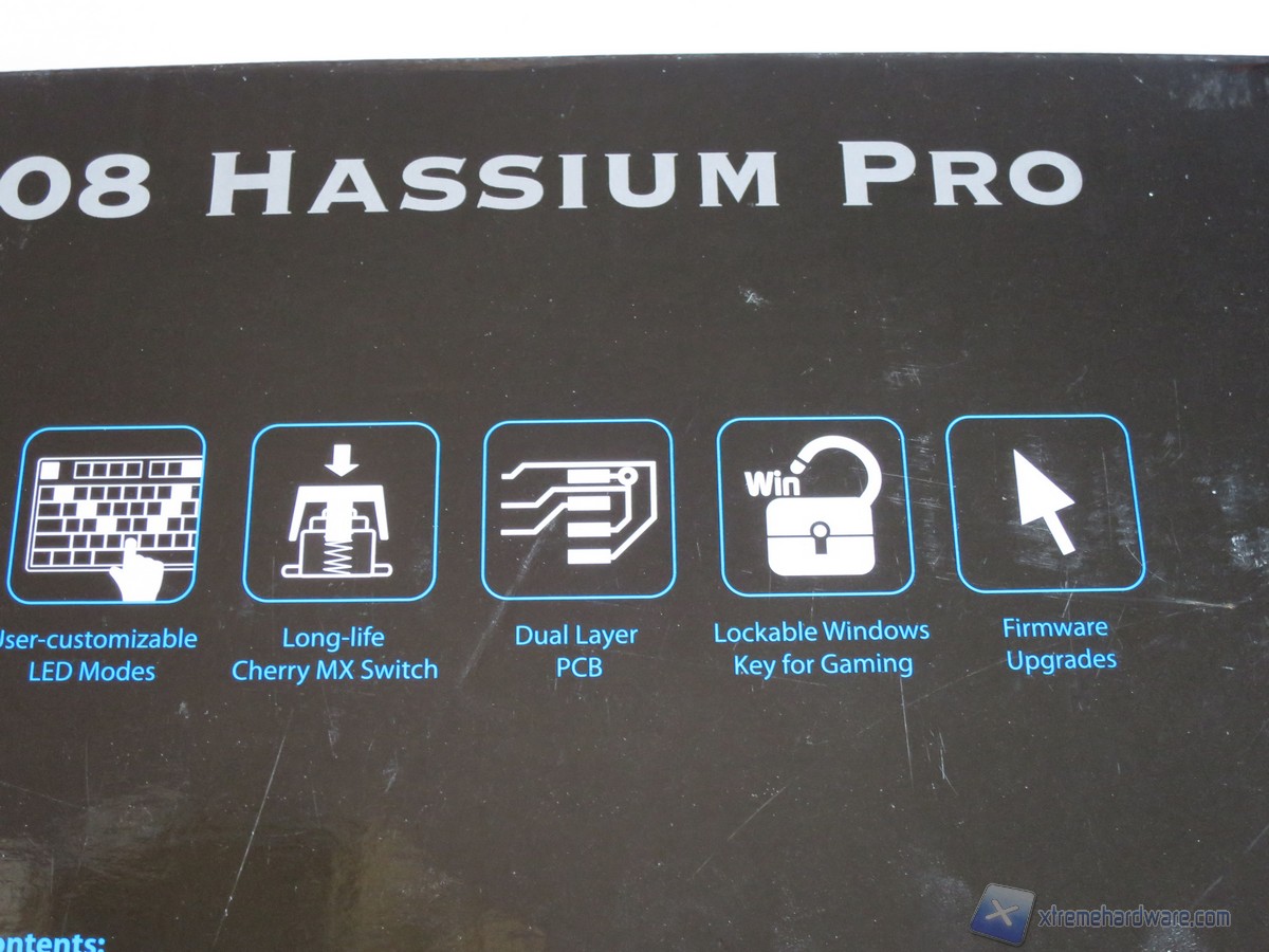 Nel retro della confezione troviamo il contenuto del bundle, i requisiti di sistema e le caratteristiche principali della tastiera, come doppio PCB per una maggiore resistenza e solidità, Script LED personalizzabili, Tasti multimediali ed altre interessanti caratteristiche.