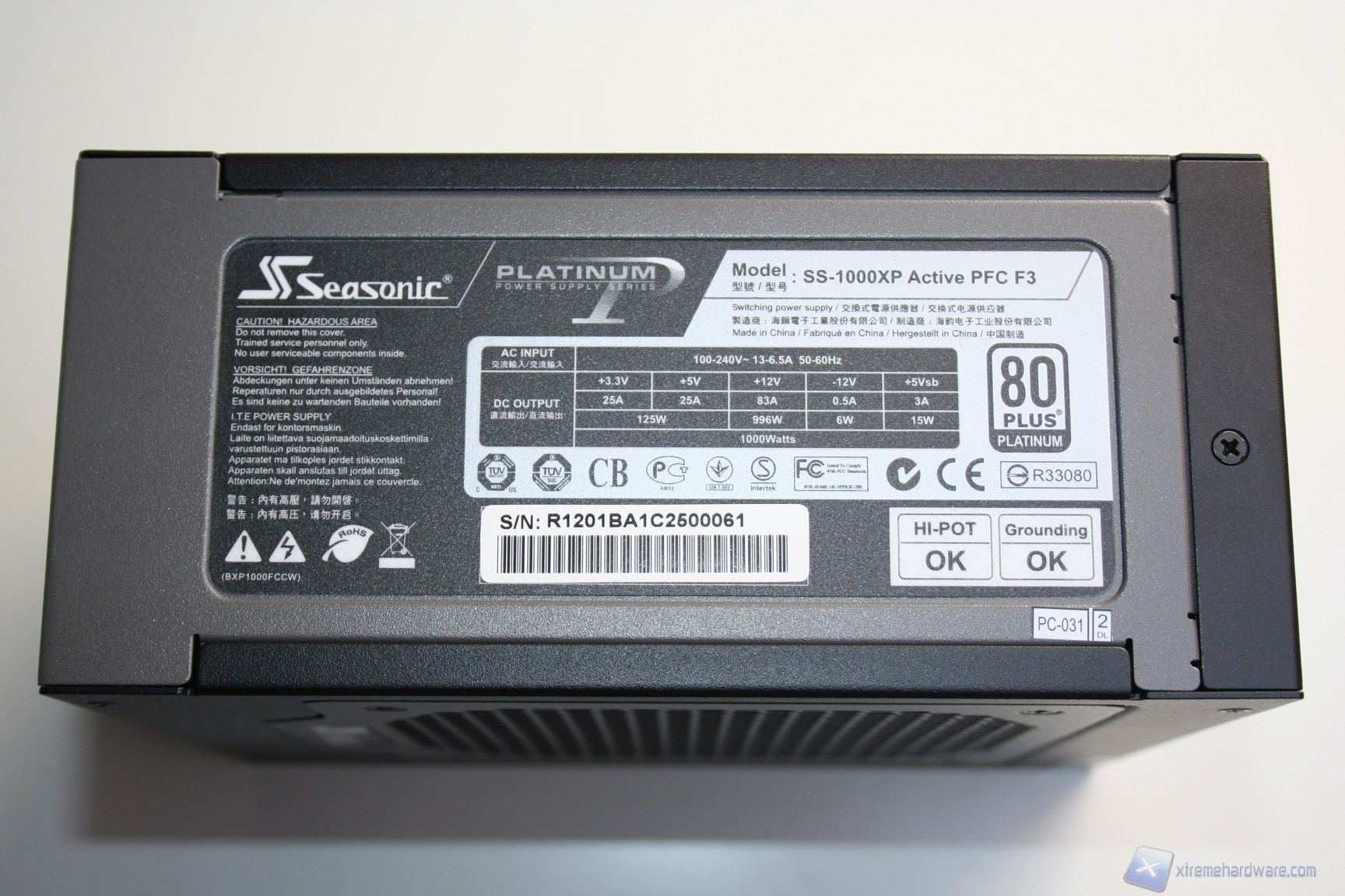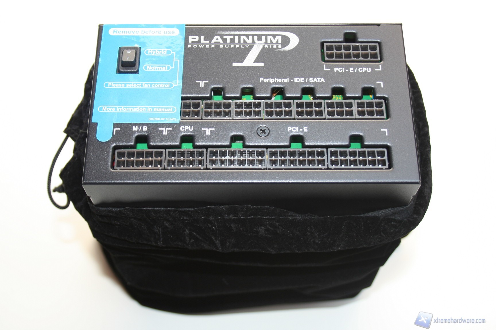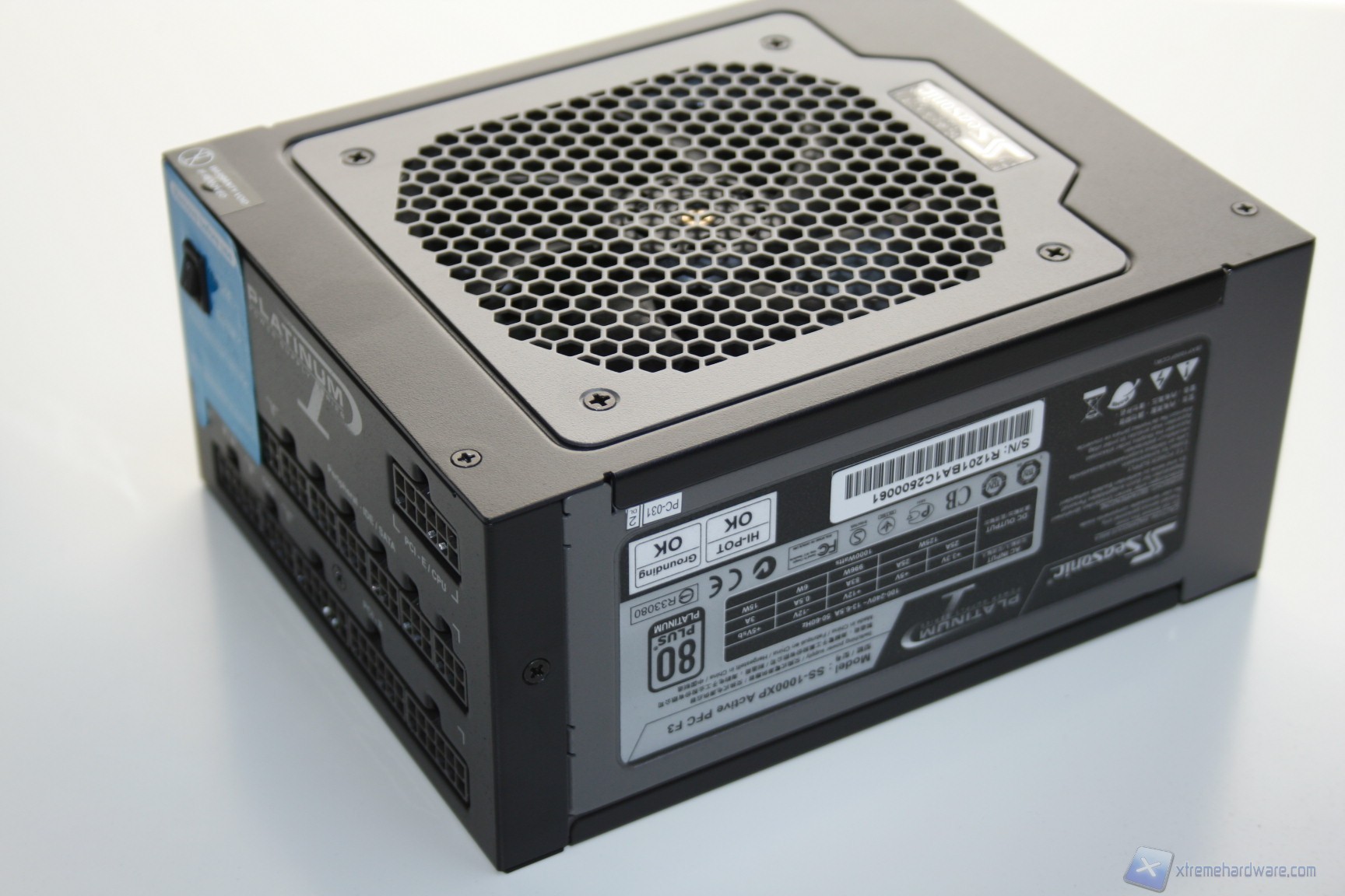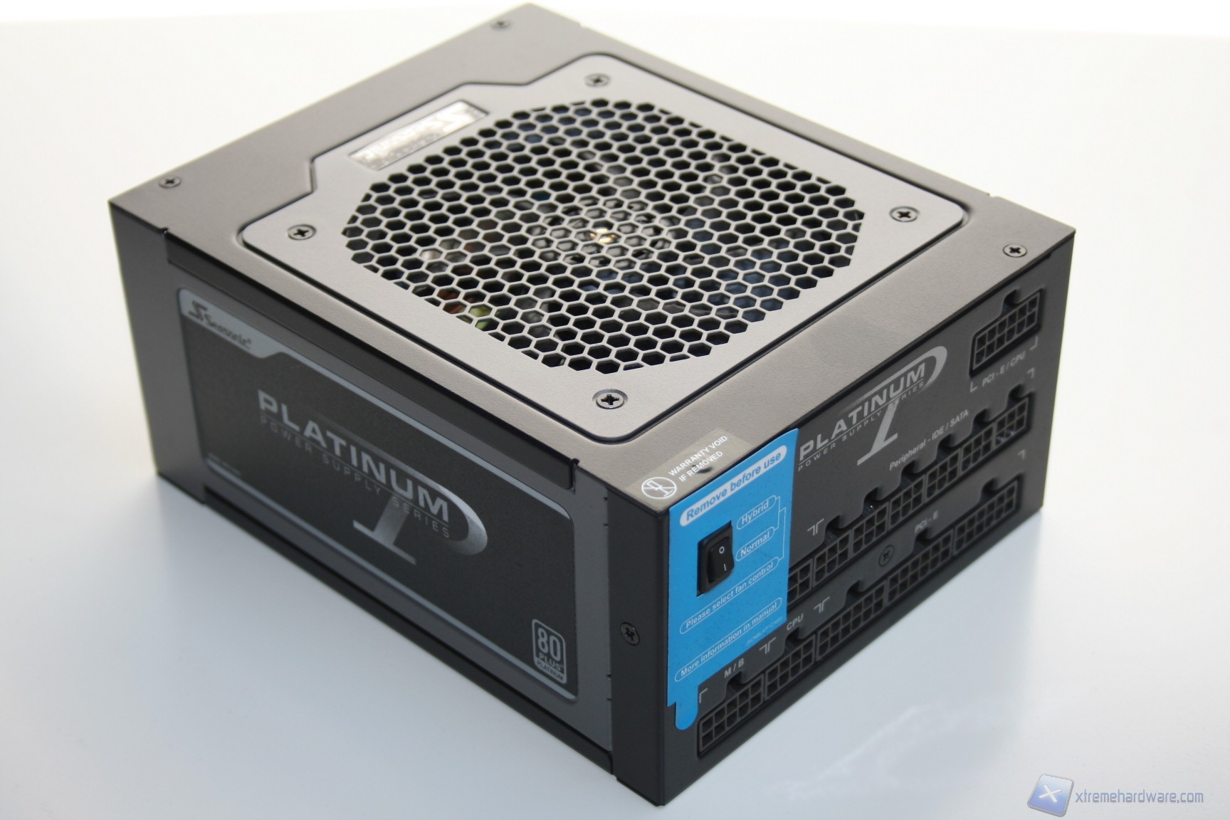Tra le caratteristiche più interessanti di questo modello ovviamente c’è la famosa certificazione 80 Plus Platinum, che permette a quest’unità di alimentazione un’efficienza decisamente elevata, maggiore del 92% al 50% del carico. Alimentatori aventi questa certificazione rappresentano il massimo attualmente disponibile in commercio, sia in termini di efficienza energetica che di qualità costruttiva. Tale certificato è pertanto già di per sé sinonimo di eccellenza. In merito ai benefici dell’efficienza energetica sappiate che ci sarà un consumo minore quindi un minore costo della corrente elettrica alla fine del mese, poi un’operatività più silenziosa dovuta al minore calore generato ed infine la consapevolezza di avere un prodotto decisamente più rispettoso delle problematiche ambientali inerenti allo spreco di energia elettrica. Data la tipologia dei materiali utilizzati nel mercato dell’high-tech non possiamo definire questi prodotti del tutto “green-oriented”, ma di certo il fattore dell’efficienza è un buon passo avanti in questa direzione. L’assenza dell’attivazione della ventola dedicata, fino a ben il 30% del carico complessivo, è un altro indice della qualità del Seasonic Platinum 1000W; ricordiamo infatti che modelli della concorrenza aventi simili fasce di prezzo arrivano a poco meno del 22%. Procediamo dunque ad analizzarlo: