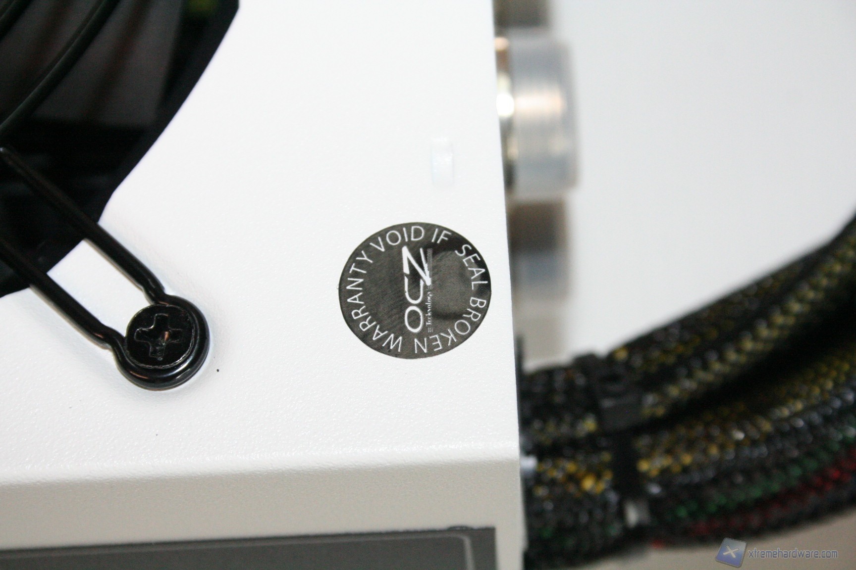 Il design esterno a prima vista sembra ricalcare il fratello minore da 400W, ma ovviamente sono presenti alcune differenze importanti, sia a livello di grandezza che di organizzazione dei cavi modulari, che diversamente da molte soluzioni concorrenti, presentano un attacco con connettore metallico, a ghiera, a quattro e cinque poli, che vengono coperti da un piccolo cappuccio di plastica in caso di inutilizzo. Notiamo l’assenza di feritoie di aerazione addizionali, chiaro indice dell’elevata efficienza del modello. Nella parte superiore è presente la griglia di aerazione della ventola da 140mm, incassata in una struttura con quattro viti a croce, removibile. La verniciatura è eccellente e sono presenti diversi adesivi laterali che ne descrivono il seriale e le specifiche tecniche. La cura per i dettagli è elevata e sebbene ricordi moltissimo il modello NZXT HALE90 850W è presente un doppio imballo, che consiste nella classica bustina esterna con un laccio di chiusura e della plastica interna, forse per proteggerlo da liquidi.