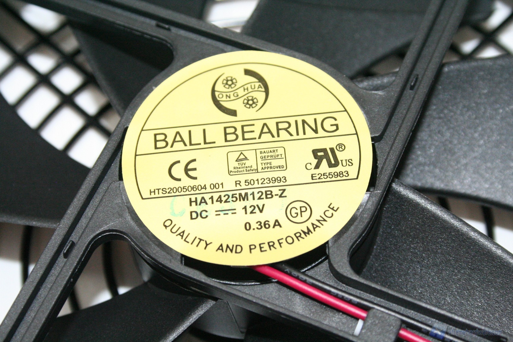 Diversamente dal modello 400W in questo caso si è scelto di adottare una ventola dal diametro maggiore, da 140mm, precisamente la Ong Hua HA1425M12B-Z da circa 2000RPM massimo, anche se questo valore è puramente teorico in quanto è legato alla regolazione in base alla temperature ambiente, che appunto varia molto; con una temperatura ambiente di 25/30 gradi centigradi l’alimentatore non sarà affatto rumoroso, nemmeno sotto carico. La conformazione è classica a 7 pale, il colore è nero ma la parte più interessante ovviamente è la regolazione, fanless fino a 600W di carico! Le pale delle ventole sono di normale tipologia, quindi non è stato necessario introdurre modelli più performanti, anche per via del diametro elevato, che permette di abbassare la rumorosità e migliorare il CFM.