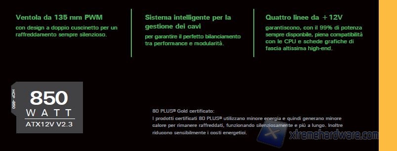 È indubbio che sia un modello top di gamma e verificheremo quanto affermato dal produttore. Precisiamo comunque che il prodotto sembra essere, perlomeno sulla carta, davvero notevole, in quanto presenta caratteristiche tecniche degne dei migliori alimentatori in circolazione, con elementi peculiari di assoluto rilievo.