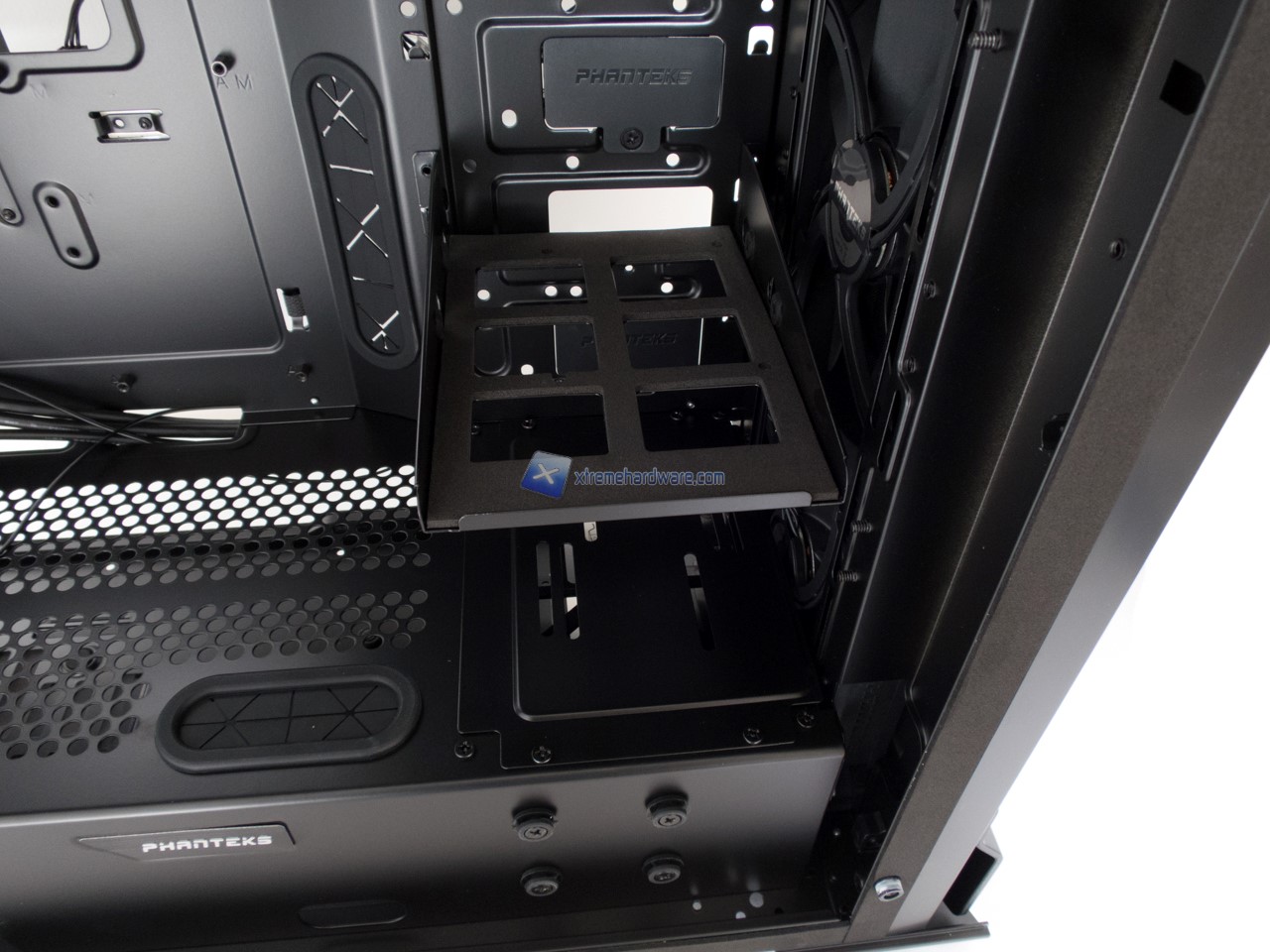Nel lato destro il Tray troviamo gli immancabili fori per i supporti/cage per Hard Disk da 3,5’’. Nel caso dell’Evolv ATX TG come abbiamo visto ne vengono forniti ben tre in bundle ma in altri case già recensiti saranno da acquistare a parte. In totale potremo installare fino a 5 cage/Dischi.