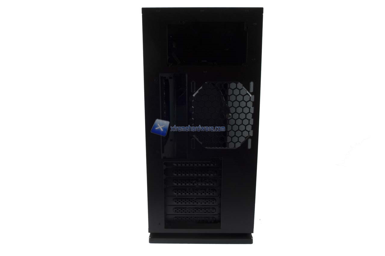 Il pannello di destra mostra il classico design esagonale. Fori posizionati in corrispondenza del supporto per due ventole da 120 mm e/o radiatore da 240 interno.