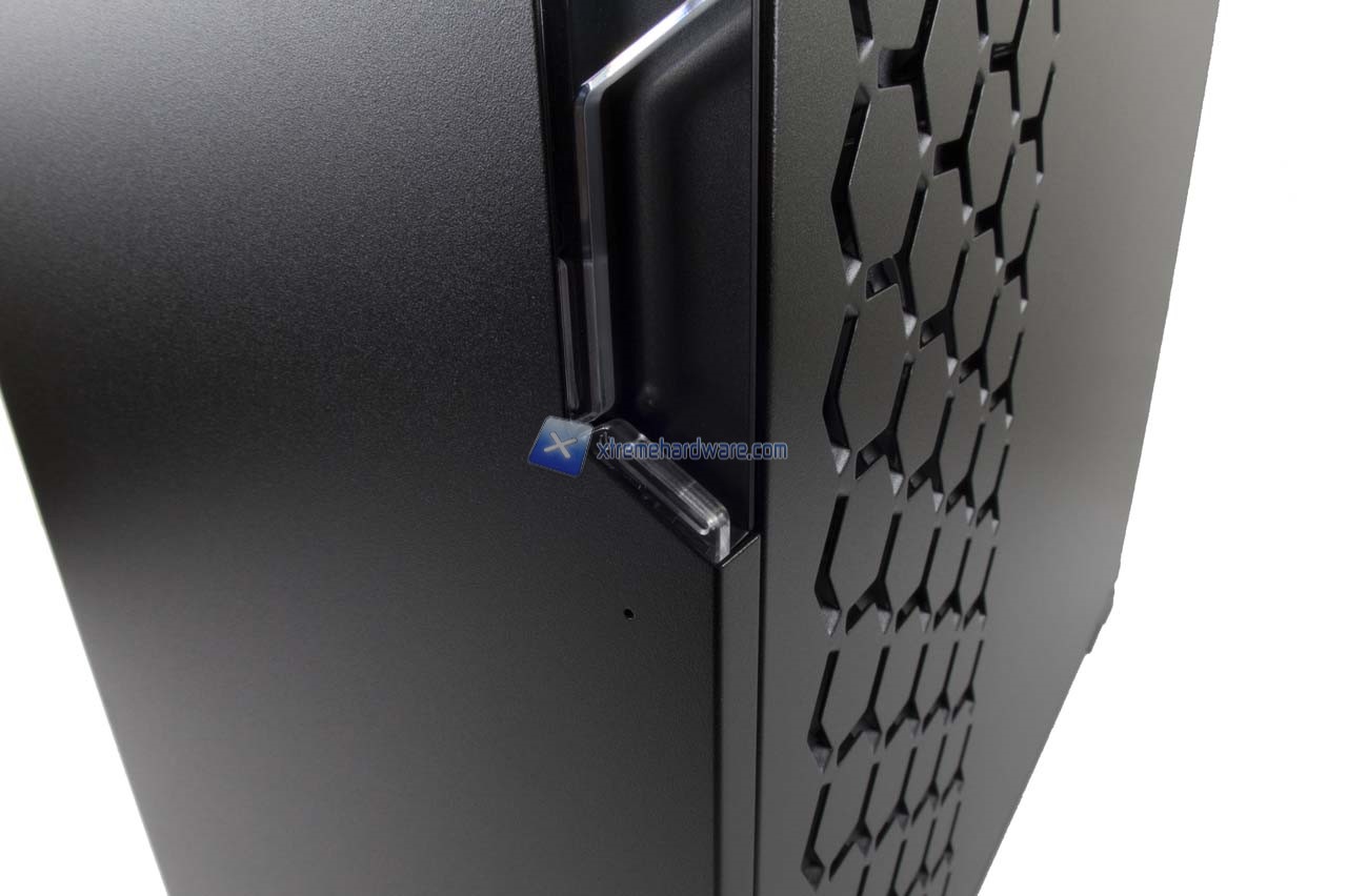 Dal pannello frontale possiamo passare velocemente al pannello superiore anche questo rigorosamente chiuso per offrire un aspetto quanto più pulito e elegante a scapito di buona parte dell’aereazione possibile.