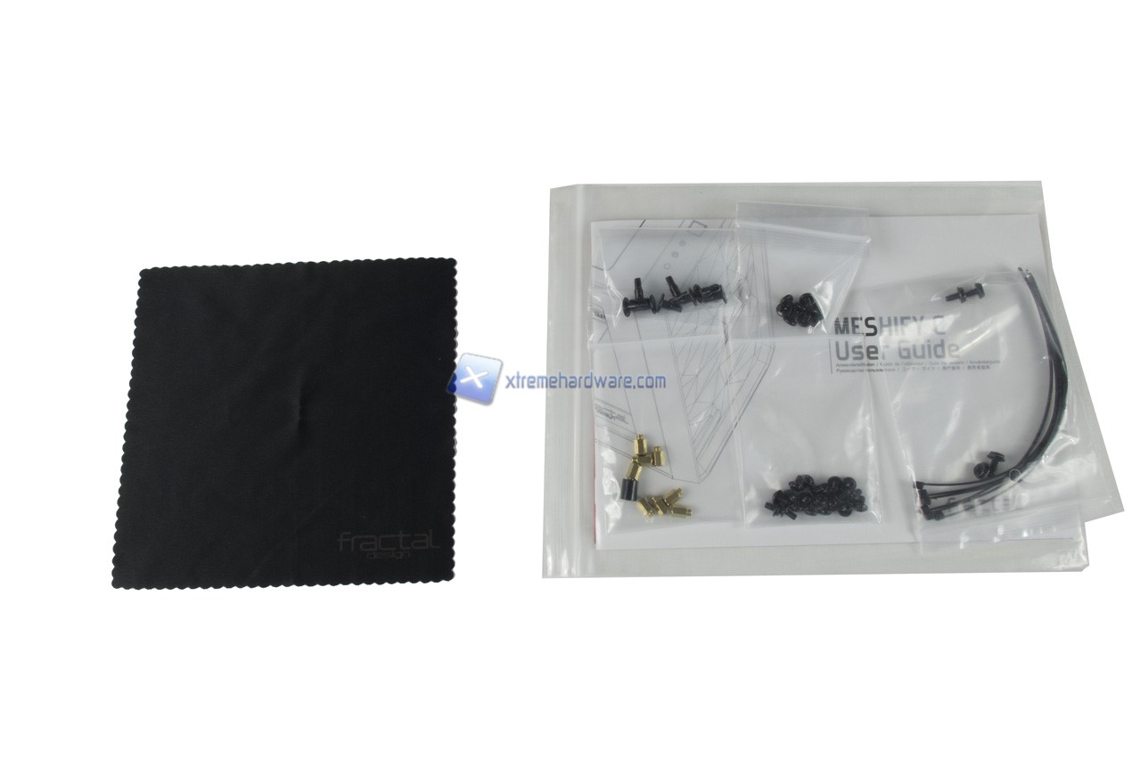 Bundle nella norma, fatta eccezione per la presenza di un panno in microfibra riportante il logo della Fractal Design. Piccoli dettagli apprezzati.