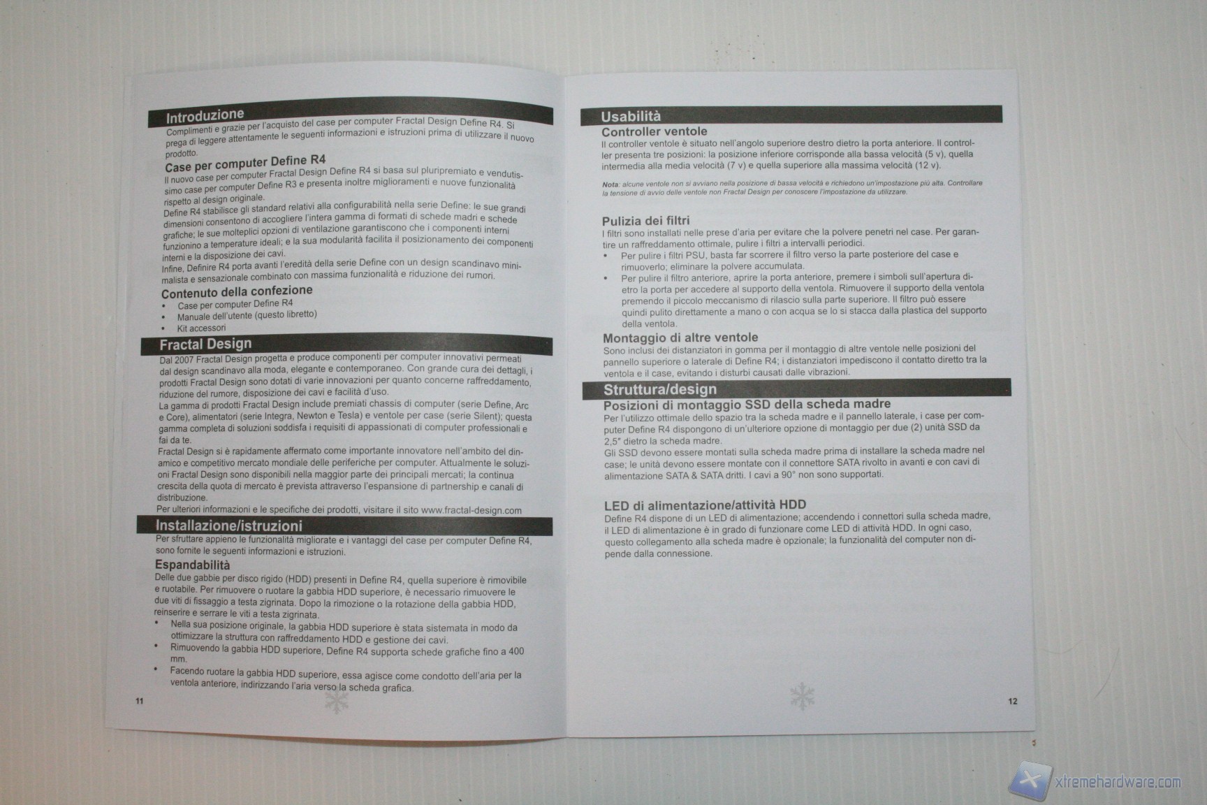 Riportiamo le fotografie del manuale, al fine di darvi un’idea anche dei consigli di Fractal Design: