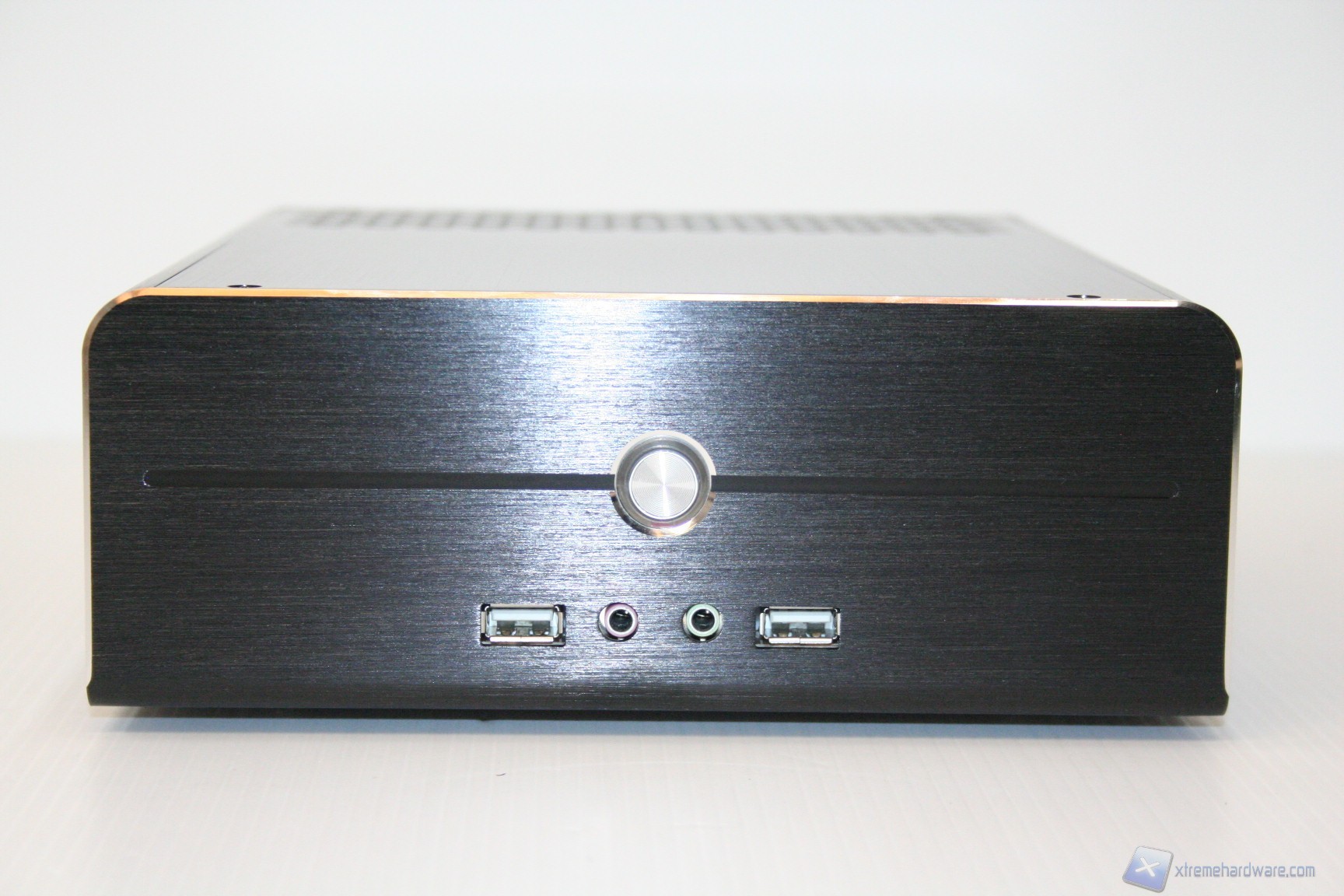 La parte frontale nell’ITEI5 è caratterizzata da un frontalino spesso 2mm in alluminio con finitura spazzolata, che troviamo sull’intera struttura. Il pulsante di accensione si trova al centro, insieme a due ingressi USB 2.0, con l’entrata per il microfono e l’audio. Purtroppo non c’è il supporto all’ultimo standard USB 3.0, diventato ormai un must per il collegamento di periferiche di archiviazione ad alta velocità. Nella parte laterale, come si vede dalle fotografie, c’è un taglio molto simile a quello del Silverstone TJ04-Evo, il che comporta una finitura semplicemente eccelsa, molto robusta ed elegante.