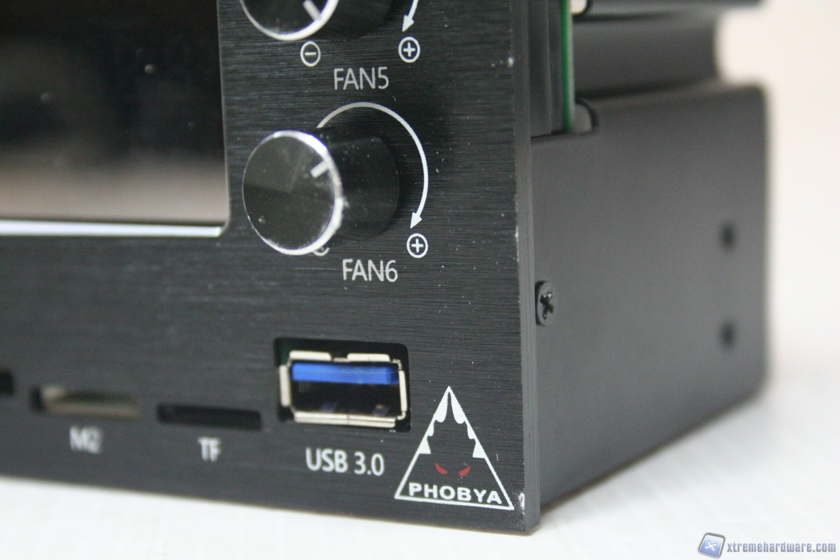 Il fan controller TPC di Phobya permette di controllare tutte le sue funzioni attraverso i sei potenziometri frontali, che sono associati ad uno schermo di elevate dimensioni, dotato però di una risoluzione nella media. Permette la visualizzazione degli RPM e della temperatura mediante i sei sensori associato ad ogni singolo canale. Lo schermo LCD presenta un singolo colore, Verde.