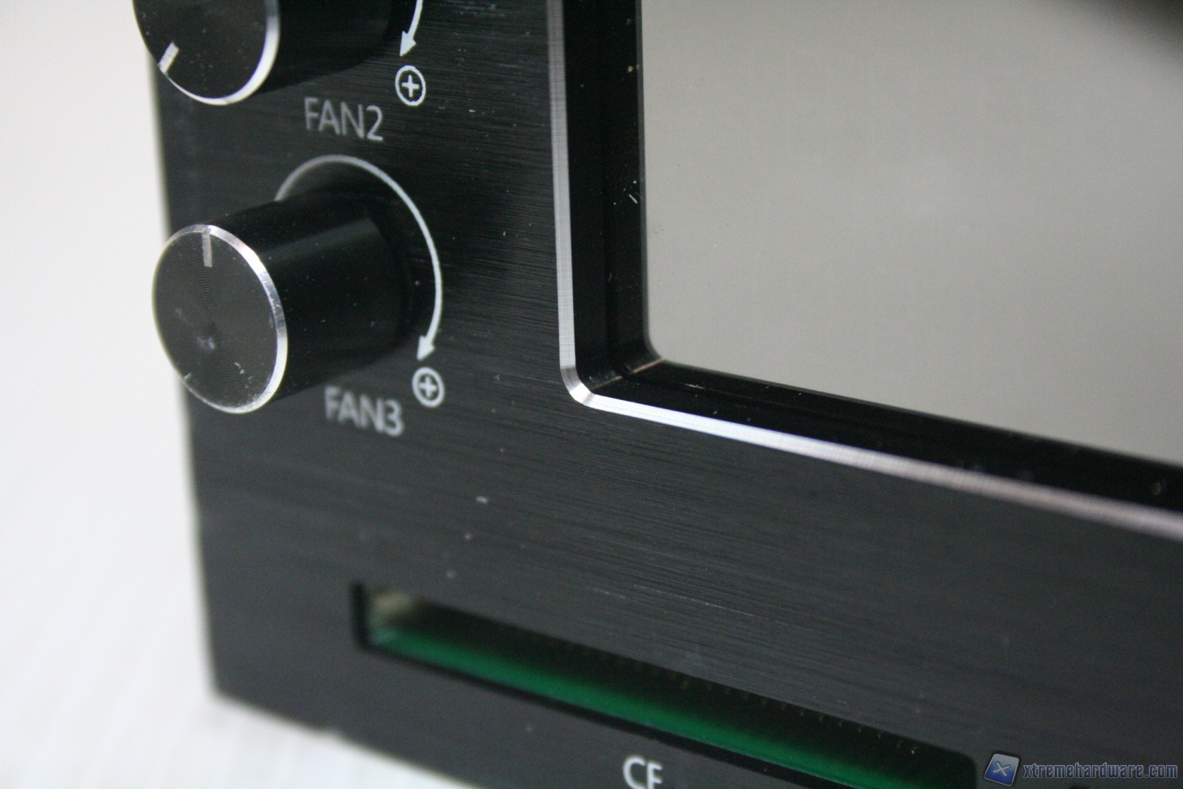 Frontalmente c’è una struttura in alluminio con una finitura eccellente, identica a prodotti Phobya delle serie precedenti. Per quanto riguarda il telaio laterale, è finalmente acciaio, il che ovvia a problemi di stabilità o durevolezza dei modelli precedenti in plastica dura, il cui feeling iniziale, per quanto relativo, è tutt’altro che positivo. Potrebbe esserci un leggerissimo disallineamento dei potenziometri, ma non sarà tale da compromettere le performance od il funzionamento. Ciò, qualora fosse presente, sarebbe dovuto alla pressione esercitata dalle viti posteriori, e probabilmente dall’alimentazione dell’LCD stesso, che tende a esercitare una forza sul PCB, deformando leggermente quindi l’assetto orizzontale dei potenziometri frontali. Data la presenza di potenziometri, potrebbe esserci qualche problema per l’integrazione in cabinet con paratie anteriori a chiusura laterale, infatti, similmente a quanto appurato nella recensione del case NZXT Phantom 820, anche in questo caso probabilmente potrebbe essere presente una leggera collisione frontale tra il fan controller e la paratia di questo modello, che comunque permette la chiusura. Esteticamente parlando è un modello molto valido, che si integrerà perfettamente nella parte frontale del case e farà certamente bella figura (una parentesi da esteti dei cabinet: serve ? E’ assolutamente relativo perché è fondamentale la funzionalità, ma anche l’occhio vuole la sua parte, specialmente se il prezzo comincia ad essere elevato). Lateralmente è abbastanza profondo ed inoltre presenta due serie di fori per l’installazione. Consigliamo comunque di adottare un sistema avente almeno il doppio di fori, per agevolare l’installazione, o meglio di quattro serie di fori orizzontali senza separazione.