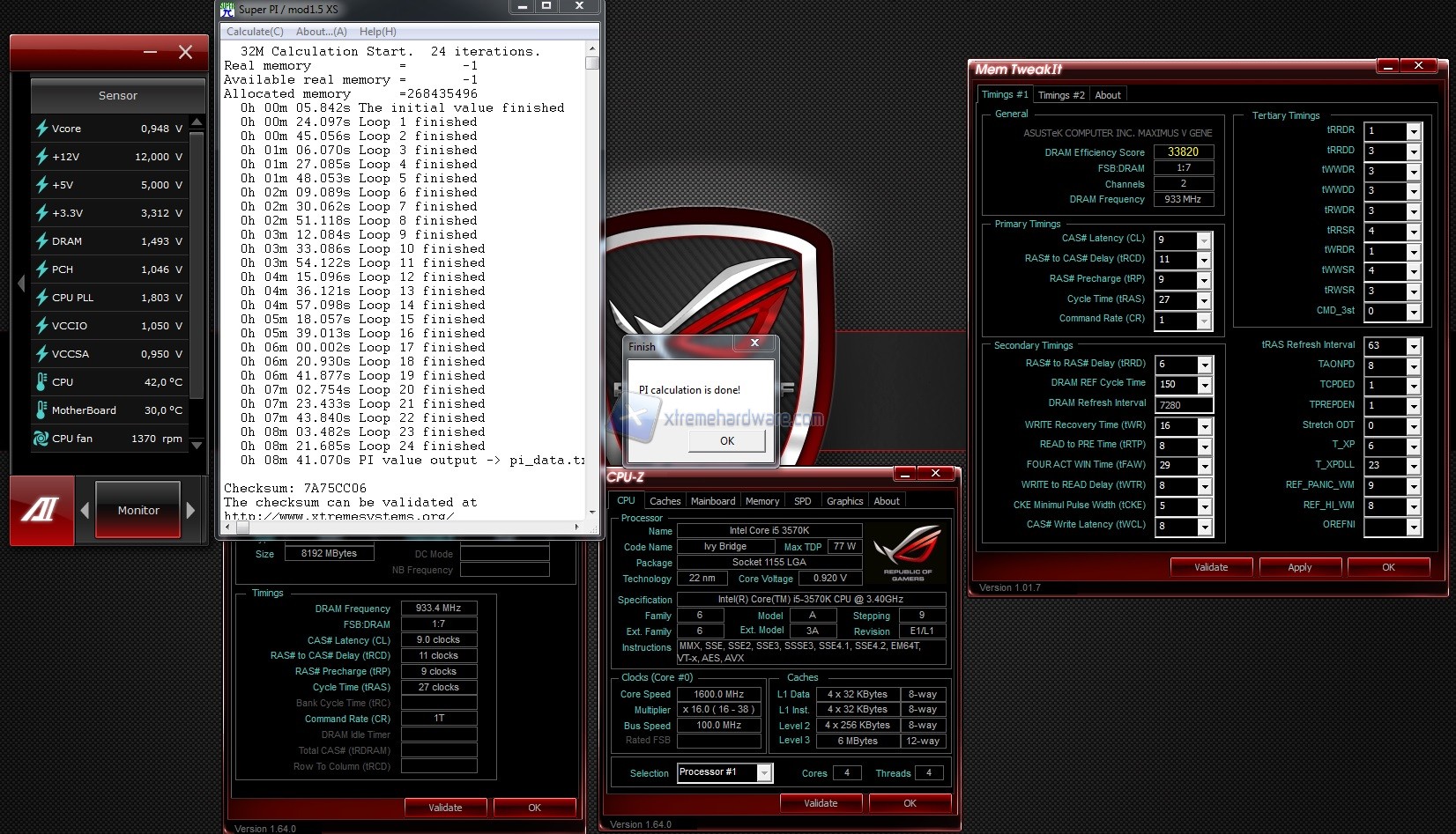 Questo tool sollecita il processore nel calcolo del PiGrego consentendo di calcolare finoa a 32 milini di decimali (Super PI 32M). Logicamente più è esoso il calcolo, più lo stadio CPU-RAM viene sollecitato. Questi i risultati raggiunti: