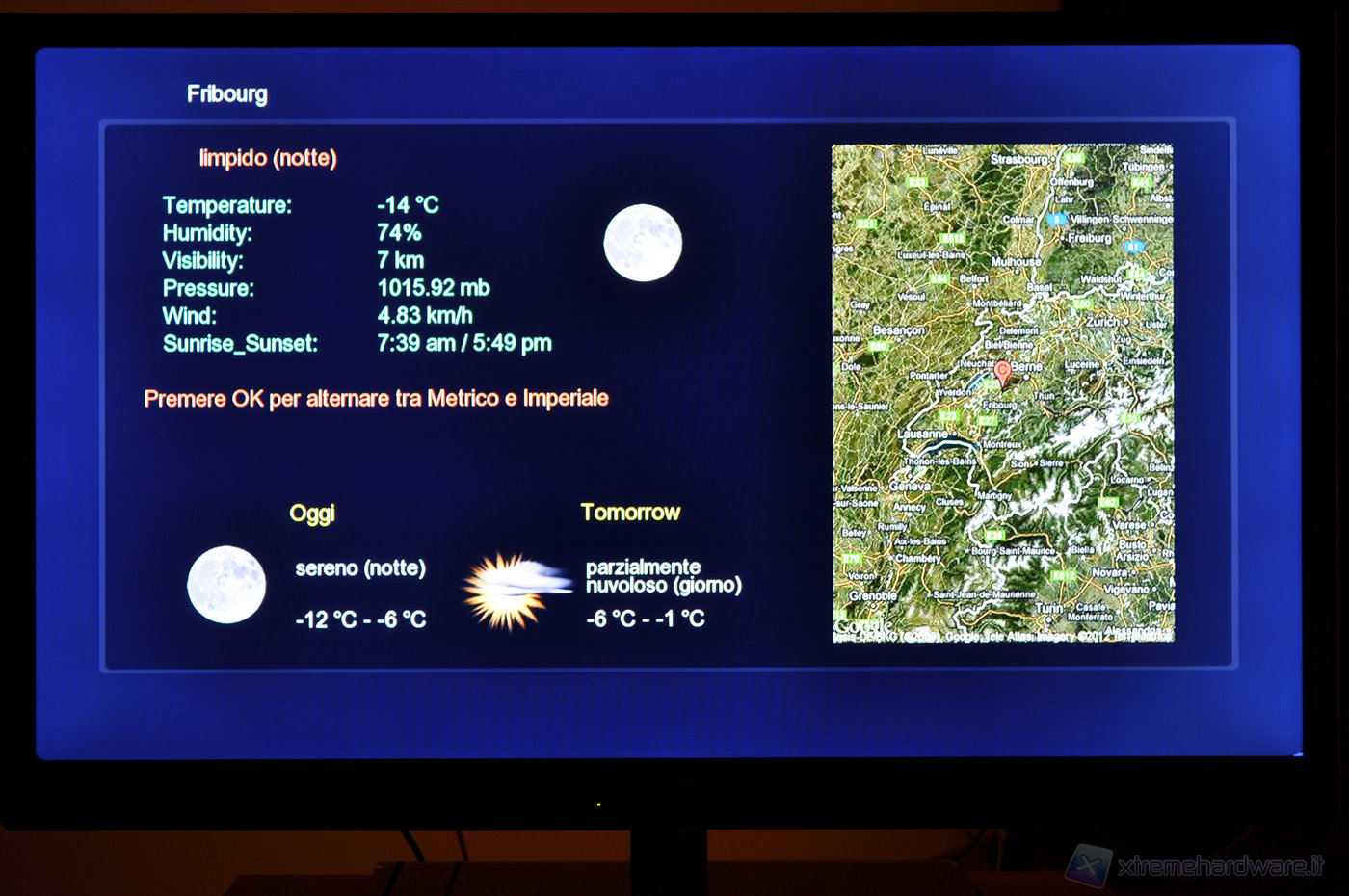 Questa applicazione permette di monitorare temperature e previsioni (del giorno stesso e di quello successivo) di diverse città. Una mappa mostra in tempo la situazione delle nubi nella regione.