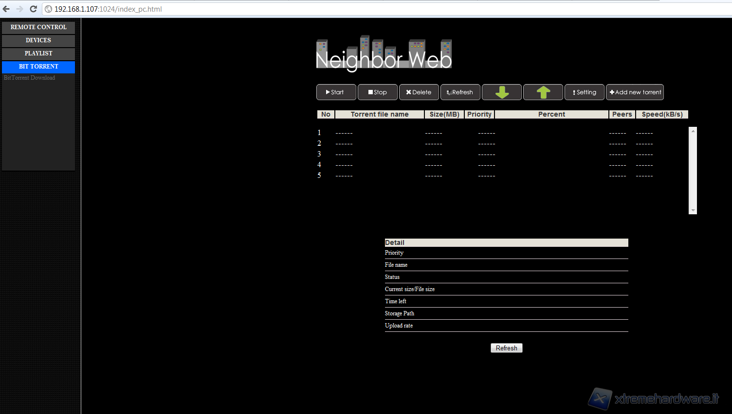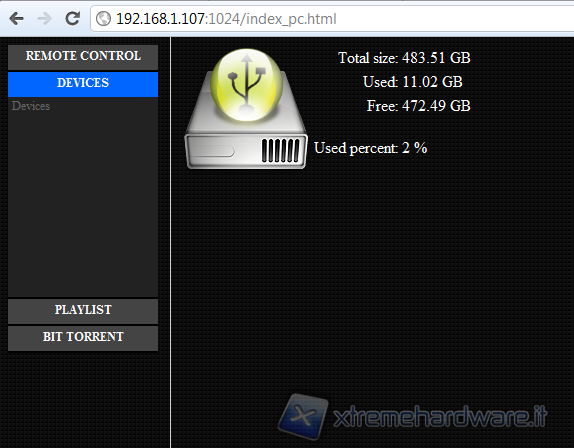 Per caricare i file torrent da scaricare dovremo invece accedere ad una interfaccia web da un PC nelle rete locale o da remoto, accessibile sulla porta 1024 tramite servizio http (digitare nel browser “indirizzo dell’ICY BOX”:1024).