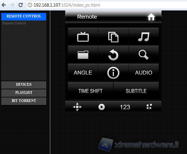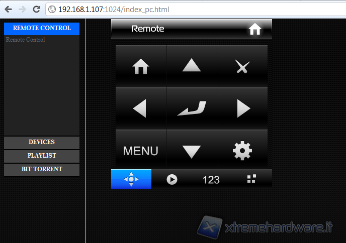 Tramite lo stesso servizio è possibile inoltre ottenere un’interfaccia che replica le funzione del telecomando, molto comoda per utilizzare il cellulare come telecomando. Sporadicamente il servizio HTTP sulla porta 1024 è risultato non funzionante durante il nostro utilizzo, probabilmente a causa di conflitti con il router.