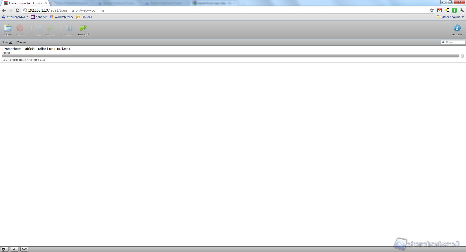 Un servizio con funzionalità di controllo del client bit-torrent è presente anche sulla porta 9091. Tale servizio permette il monitoring dei download e il caricamento di file per il download tramite upload del file .torrent o inserimento dell’URL magnet link.