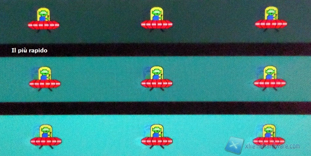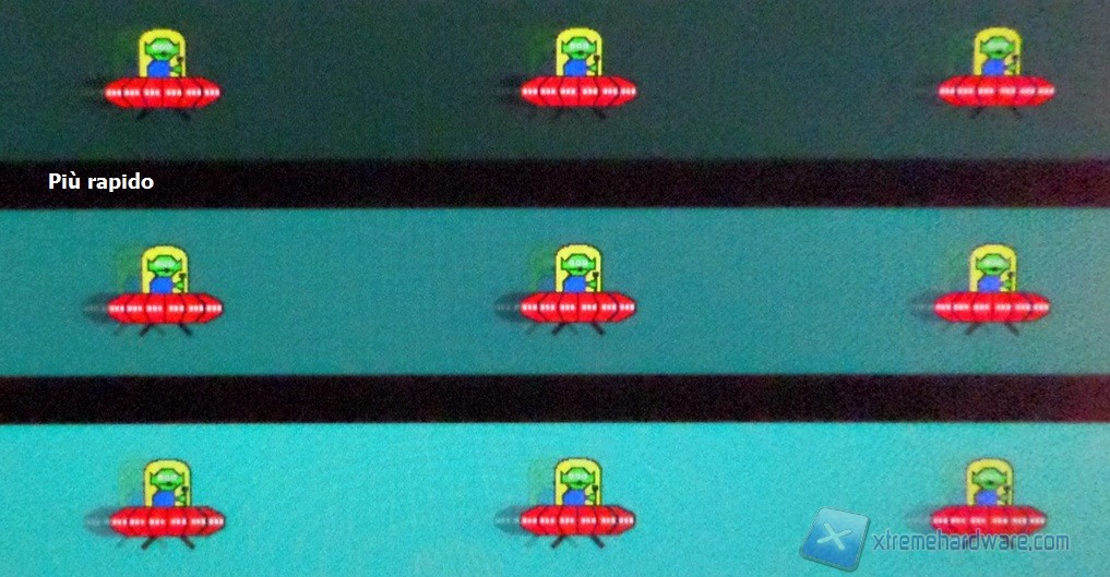 Senza ombra di dubbio il setting di default, “più rapido”, è risultato il più bilanciato nella terna di opzioni disponibili. Quello più spinto manifesta spesso, durante questi test, il reverse ghost, indice di un pronunciato overshoot di segnale. Il setting standard invece mostra una scia decisamente più pronunciata.