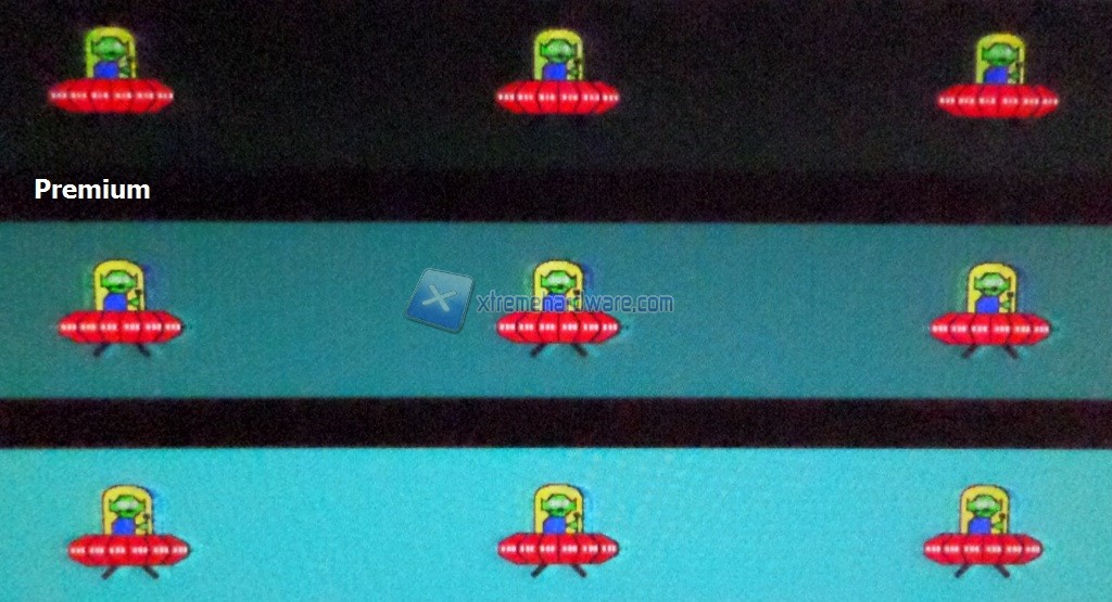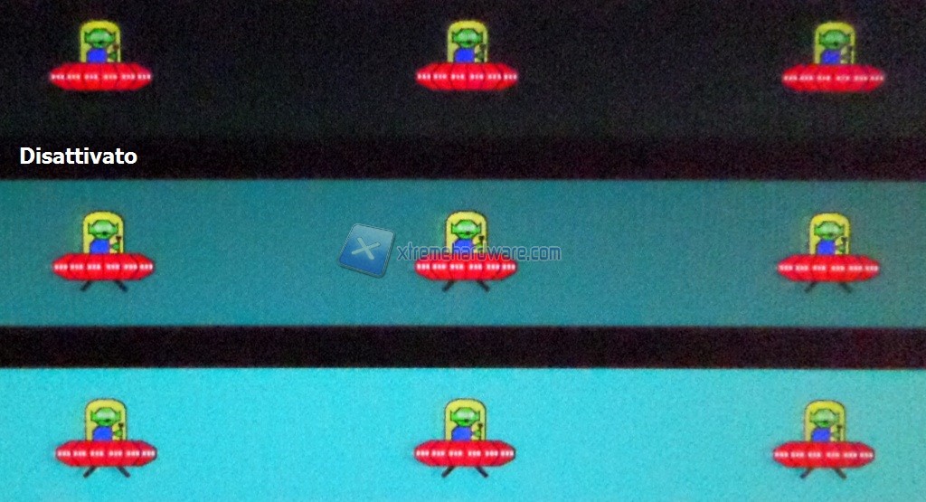 È praticamente inutile mostrare le immagini catturate con la tecnologia Blur Reduction attiva, visto che la riproduzione (in foto) è funzione del valore dell’overdrive selezionato; questo senza poi considerare la difficoltà di riuscire a prendere un frame utile per via della retroilluminazione stroboscopica. Di persona invece l’effetto è maggiormente visibile e come abbiamo già detto anche in altre occasioni, ne migliora decisamente la definizione (riducendo appunto la sfocatura). Confrontando il comportamento del monitor con ad esempio l’EIZO FG2421 e l’ASUS PG278Q (altri due modelli con funzione simile), il BenQ va ad occupare la terza posizione e magari più per un overdrive che avrebbe potuto essere regolato in modo più accurato. Nel test ufo, è la modalità Disattiva che restituisce una visione tendenzialmente migliore. Seppure in foto non si riesce a cogliere il dettaglio perfetto, gli altri setting più spinti (Alto e Premium) inducono un fantasma scuro davanti, mantenendo comunque il classico ghost posteriore. Dai test risulta quindi maggiormente convincente la configurazione Blur Reduction attiva con l’impostazione AMA su Disattivato.