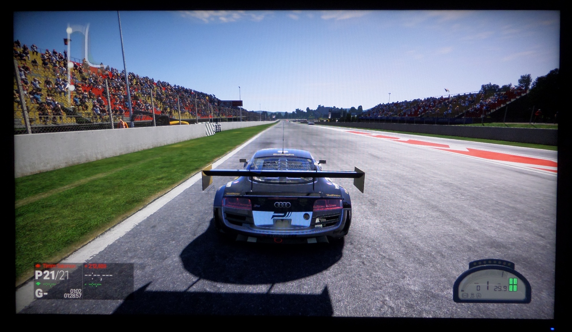 Analizzando il comportamento del Samsung con i videogames, l’impressione è quella di avere a che fare con un prodotto dalla buona reattività. I tre valori dell’overdrive settabili manifestano un comportamento diverso e quello centrale, come detto nel capitolo precedente, è quello che meglio bilancia l’effetto scia senza sfociare nel reverse ghost. La tecnologia AMD FreeSync aiuta a ridurre il tempo di lag e i fenomeni definiti stuttering e tearing, ma nel PC deve esserci una GPU Radeon compatibile. Le tre immagini qui di seguito riportate permettono un confronto tra la riproduzione con le impostazioni indicate.