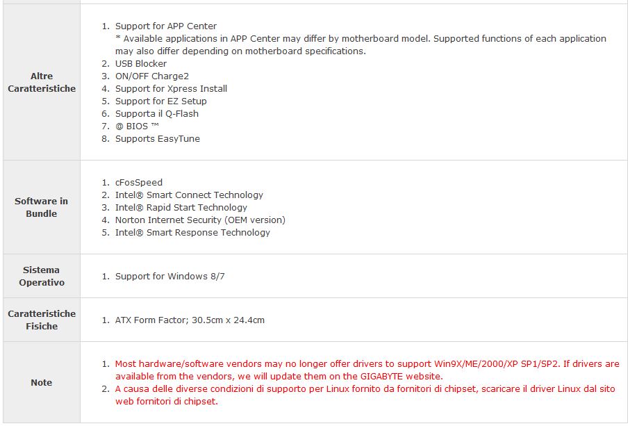 Riportiamo integralmente le specifiche della Z87X-UD3H, cosi come pubblicate sul portale del produttore