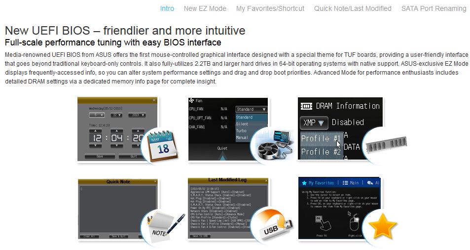 La tecnologia UEFI ha facilitato la comprensione del BIOS anche per i neofiti, arricchendone l’interfaccia d’informazioni con cui è possibile interagire anche con il solo ausilio del mouse.