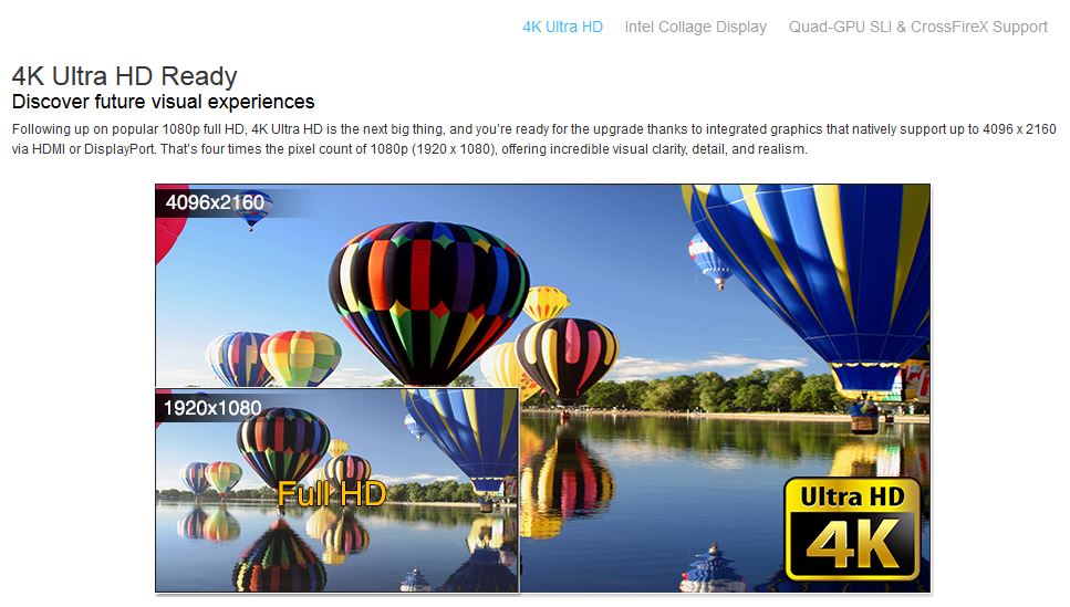 Il supporto allo standard 4K Ultra HD tramite le uscite digitali HDMI o DisplayPort incluse sulla Gryphon Z87 rende più gratificante l’esperienza visiva con i monitor che supportano tale standard.