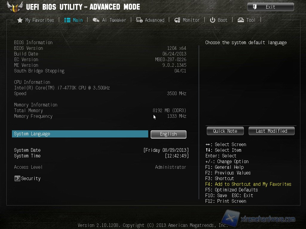 L’introduzione dello standard UEFI (Unified Extensible Firmware Interface) rilasciato da Intel nel 2007 ha consentito tra le molte features di poter personalizzare a proprio piacimento l’ostico ambiente del BIOS. Il lavoro svolto da ASUS sull’interfaccia grafica del BIOS della Gryphon Z87 è accattivante. L’impatto estetico nonché la sistematicità delle varie voci aiuta la comprensione per gli addetti ai lavori.