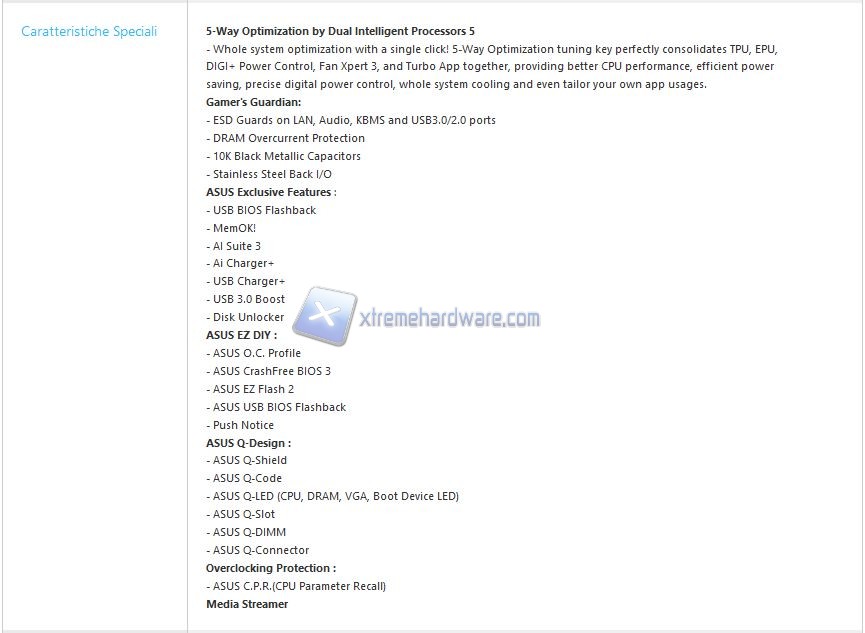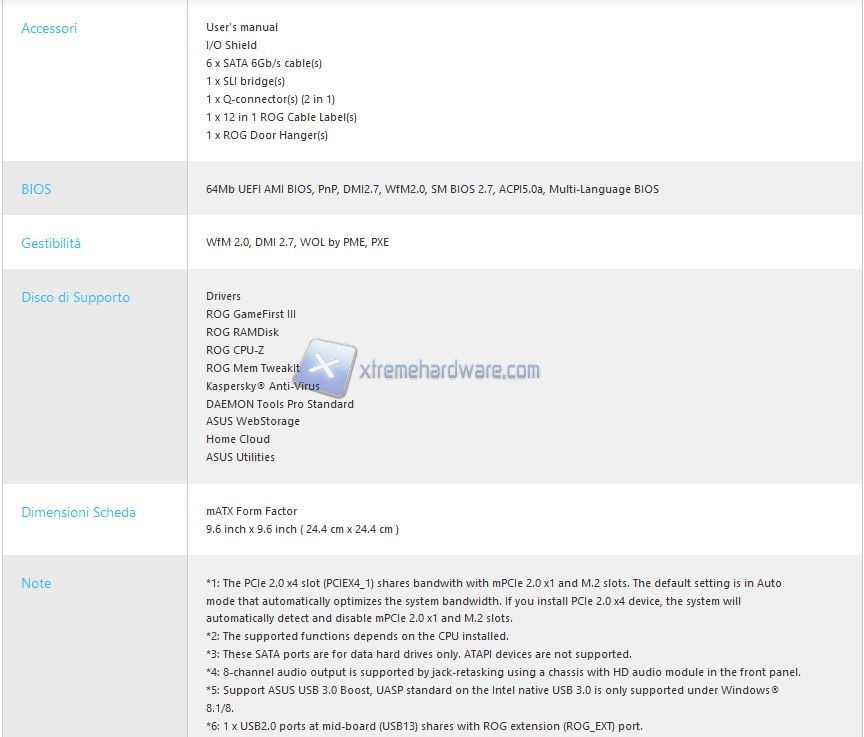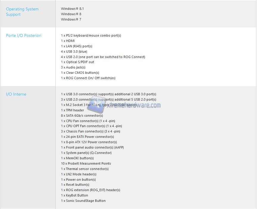 Riportiamo integralmente per completezza d’informazioni gli screen relativi alle specifiche di prodotto, disponibili anche sul sito del costruttore.