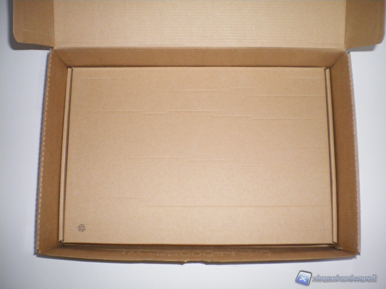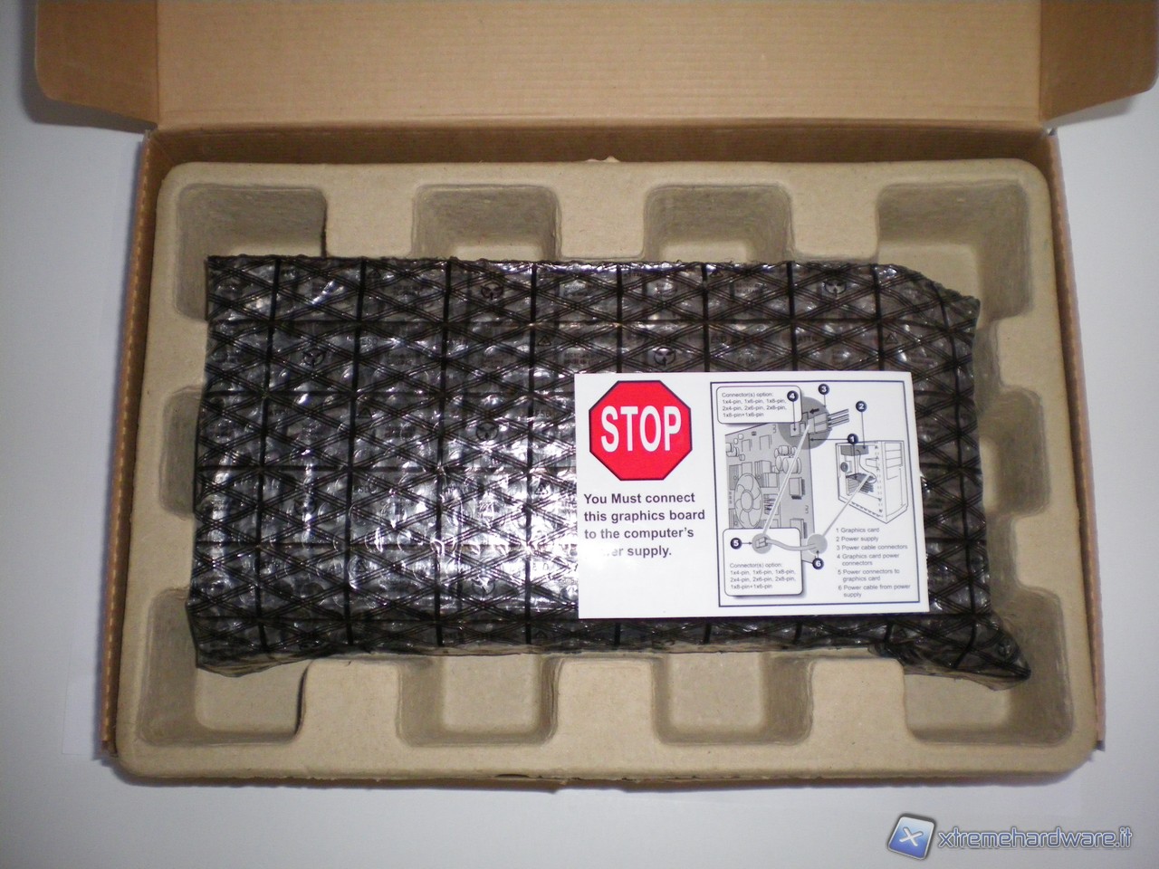 Una volta aperta la confezione principale ci ritroviamo all'interno una scatola di cartone grezzo che racchiude all'interno la nostra scheda grafica. La scheda è alloggiata all'interno di un involucro antistatico e ben protetta da ulteriori imbottiture che assicurano protezione durante il trasporto dal produttore ai vari rivenditori, fino a casa nostra.