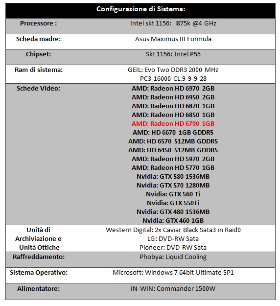 Abbiamo testato la AMD Radeon HD 6790 1GB sul seguente sistema di prova: