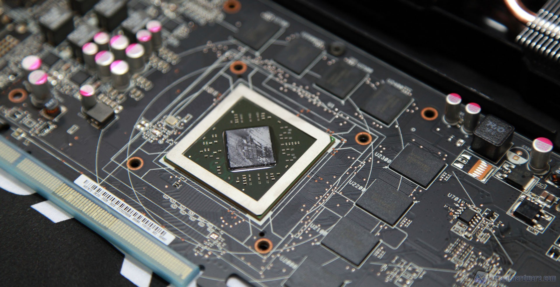 Il PCB non differisce dalla versione reference tranne che per quanto riguarda la colorazione che risulta essere nera opaca e non più lucida. Ciò permette di utilizzare sulla scheda sistemi di raffreddamento a liquido.