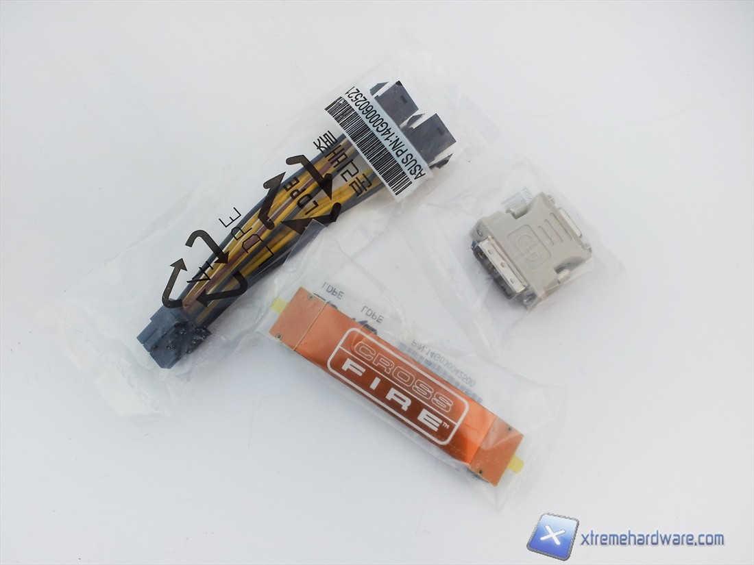 Alcuni degli accessori come l'adattatore DVI to VGA, gli adattatori per l'alimentazione e la guida all'installazione della scheda ci sembrano alquanto inutili per una scheda del genere perchè difficilmente l'utente che deciderà di acquistare una scheda video enthusiast non avrà a disposizione un monitor con ingresso DVI, un alimentatore con almeno due cavi 8 pin per l'alimentazione delle schede video e difficilmente avrà problemi nel montare schede video.