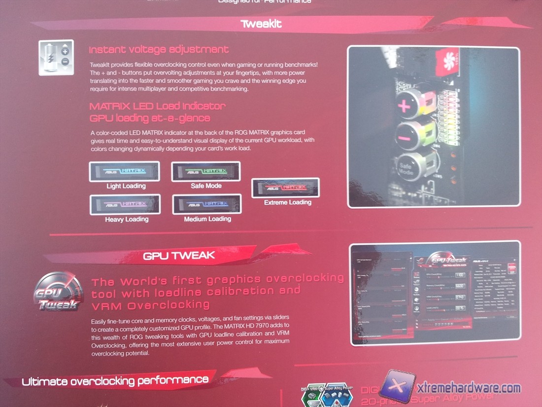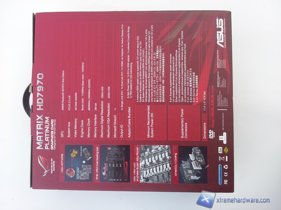Come abbiamo già avuto modo di notare in passato, le schede video appartenenti alla serie Matrix sono imponenti e maestose a partire dalla confezione nella quale vengono commercializzate, la dimensione della scatola della ASUS HD 7970 Matrix Platinum risulta infatti ben maggiore addirittura rispetto alla grandezza delle confezioni adibite alle schede madri della stessa casa produttrice.