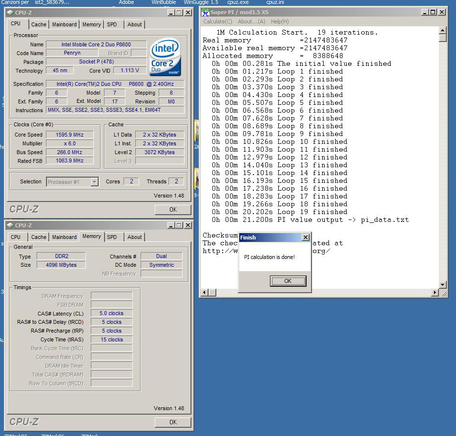 Per valutare le prestazioni di questo notebook abbiamo deciso di raddoppiare i test per capire la reale differenza tra la modalità “normale” e la modalità “turbo”. I test sono stati effettuati senza particolari Tweak al sistema operativo (abbiamo provveduto a disabilitare il servizio Audio e Temi per far girare il programma SuperPi).