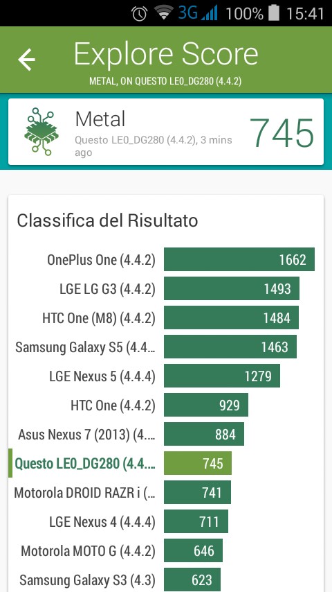 Diamo ora un giudizio complessivo sulle qualità di questo dispositivo, a partire dalle prestazioni. Di seguito trovate una serie di screenshot che ritraggono i punteggi ottenuti dal DOOGEE LEO con i più celebri benchmark per Android; come vedete i valori non sono di certo alti ma comunque molto buoni per uno smartphone di questa categoria. Nel complesso le prestazioni del DG280 sono sempre di buonissimo livello considerato il costo irrisorio di questo telefono, i benchmark non dicono tutto di un terminale e lo possiamo confermare tranquillamente dopo parecchi giorni di uso intenso e continuativo; il DOOGEE LEO è uno smartphone economico che riesce però a far girare in maniera davvero egregia Android Kitkat riducendo al minimo lag ed incertezze. Come è logico che sia non è uno smarphone adatto per videogames pesanti o applicazioni particolarmente esose però nell'utilizzo quotidiano può tranquillamente soddisfare una fetta larghissima dell'utenza.