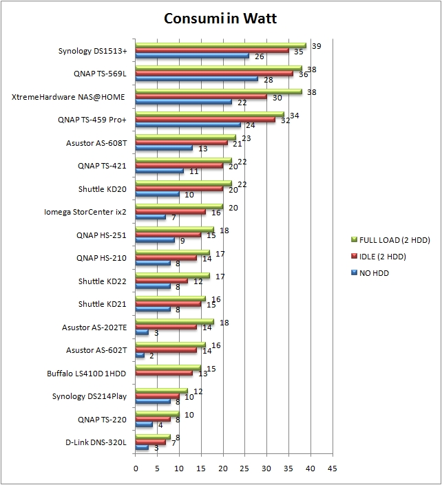 I consumi dell’HS-251 sono soddisfacenti se pensiamo che la differenza è di solo 1 Watt rispetto alla versione HS-210 ma che la componentistica hardware ben più potente.