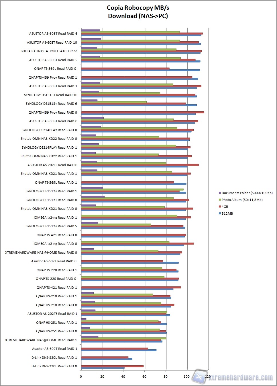 Le performance in download del nostro HS-251 attraverso l’utilizzo di Robocopy non son eccezionali.