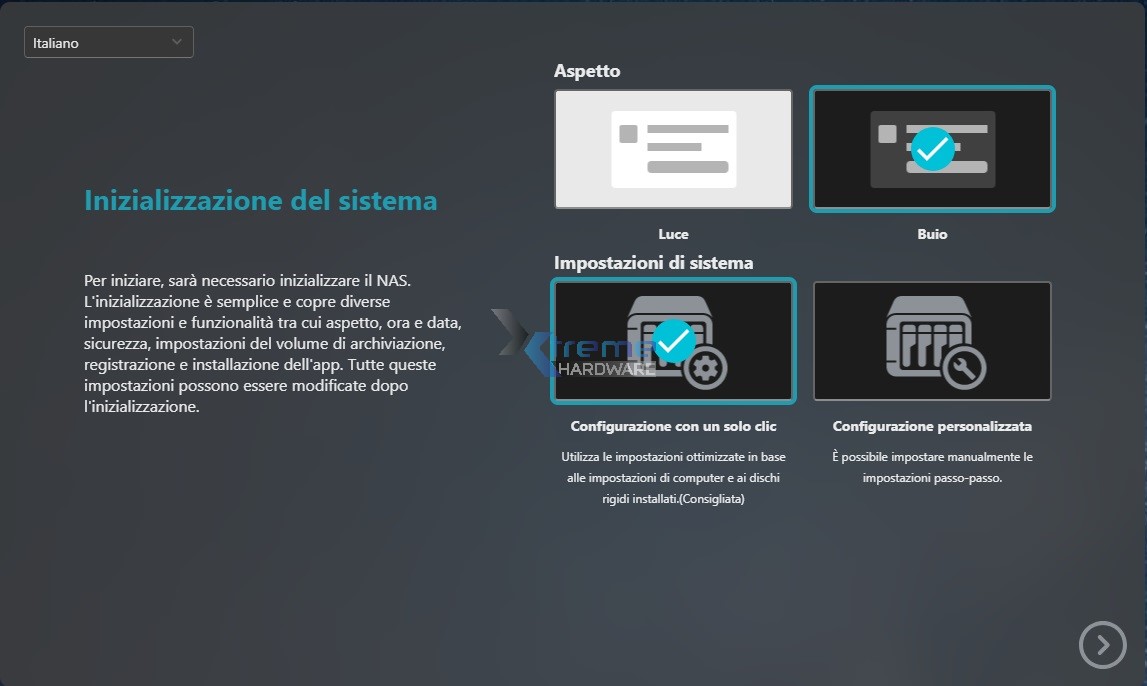 Il sistema operativo e cuore pulsante ADM, acronimo di Asustor Data Master, di tutti i NAS Asustor giunge alla versione 4.3 e aggiunge nuove funzionalità oltre che correggere come giusto che sia diversi bug preesistenti. Tramite l’Asustor ADM avremo a disposizione il pieno accesso e controllo del nostro NAS Asustor. La prima configurazione è estremamente semplice e veloce nonché localizzata in numerose lingua tra cui l’italiano. A seguire vi lasciamo alcune immagini del wizard e fasi preliminari di configurazione.